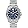 Stainless steel case with a stainless steel bracelet. Fixed stainless steel bezel showing tachymeter markings. Blue sunray dial with luminous silver-tone hands and index hour markers. An Arabic numeral appears at the 12 o'clock position. minute markers around the outer rim. Dial Type: Analog. Luminescent hands and markers. Date display at the 4 o'clock position. Chronograph - three sub-dials displaying: 60 second, 30 minute and 1/10th of a second. Scratch resistant sapphire crystal. Screw down crown. Solid case back. Round case shape. Case size: 43 mm. Band width: 20 mm. Deployment clasp with a push button release. Water resistant at 200 meters / 660 feet. Functions: chronograph, tachymeter, date, hour, minute, second. Luxury watch style. Watch label: Swiss Made.