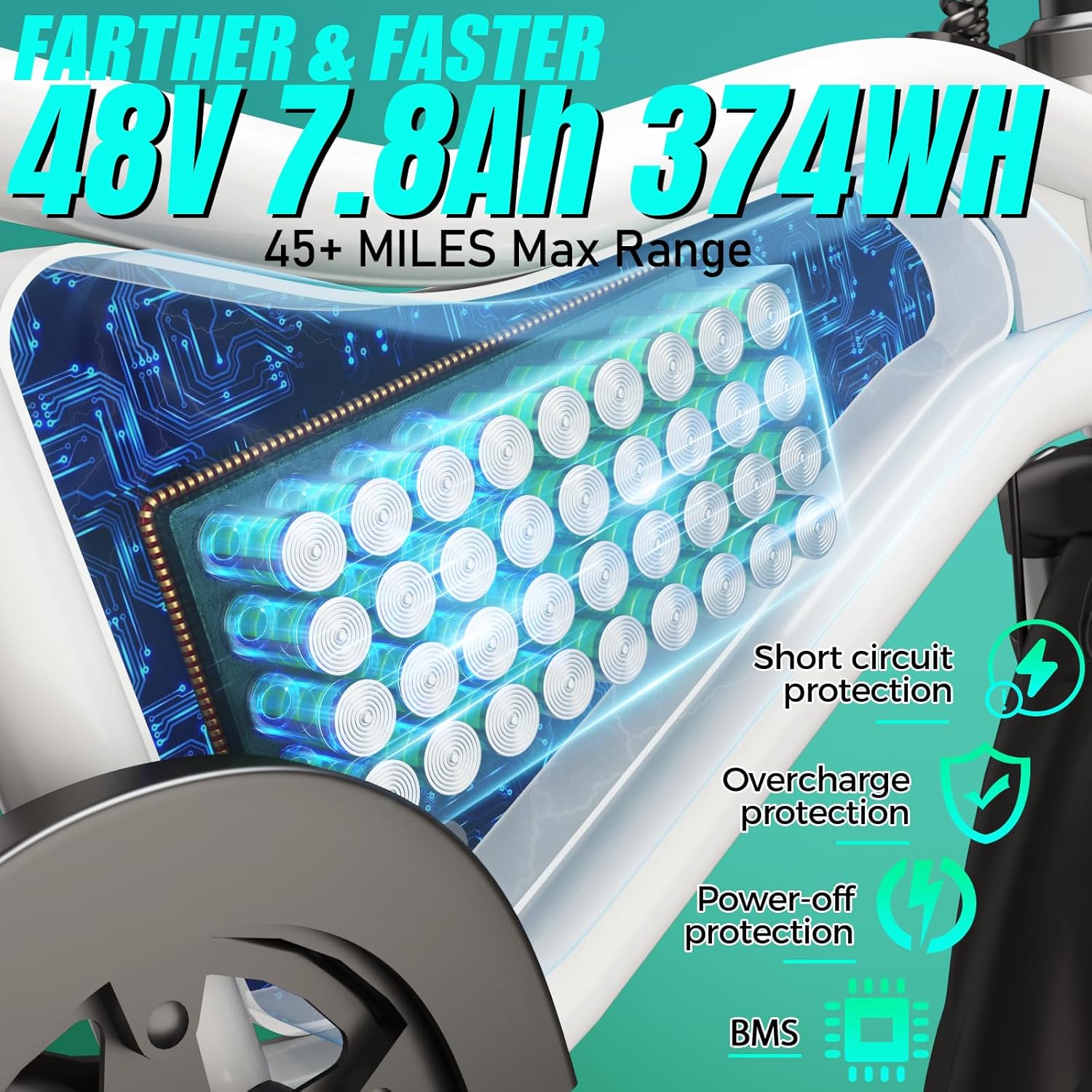 【Extended Range of 20-50 Miles】Our ebikes have built in 48V 7.8Ah battery, ensuring an impressive range that can cover 20-50 miles on a single charge. Never worry about distance with ANCHEER StreetRider e bike.