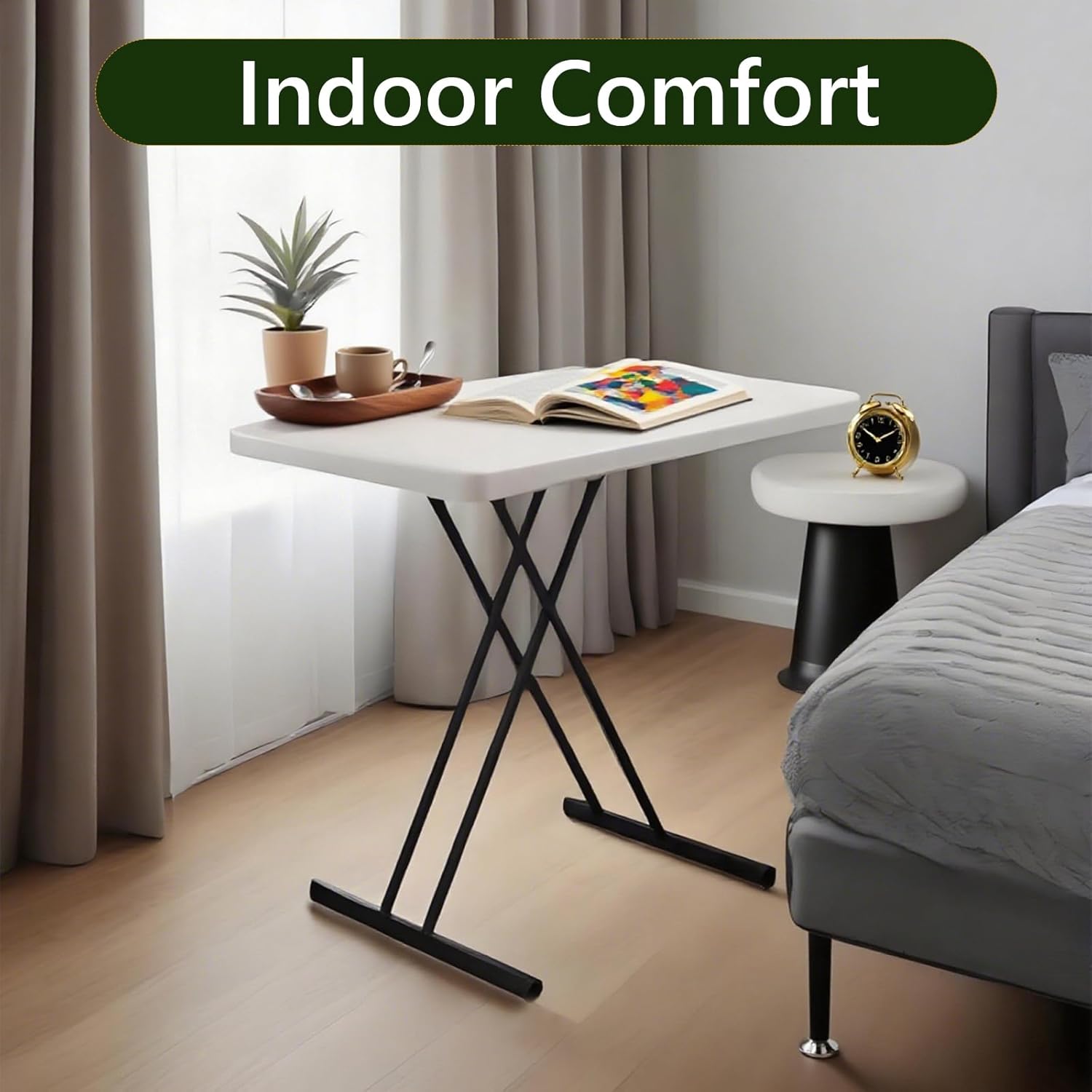 【All-Weather Multi-Purpose Table】Made from UV and water-resistant polyethylene, this durable table stands up to rain, spills, and sun exposure. Great as a patio side table, camping desk, picnic table, or indoor work surface. Whether you’re dining outside or working inside, its impact-resistant design ensures long-lasting use in any environment.