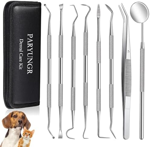 8 Pcs Dental Tools Pet Dog Teeth Cleaning Tool Kit, Stainless Steel Dental Picks Mouth Mirror Tooth Scraper Plaque Tartar Remover, Pets Oral Care Hygiene Set for Dogs and Cats Use with Case
