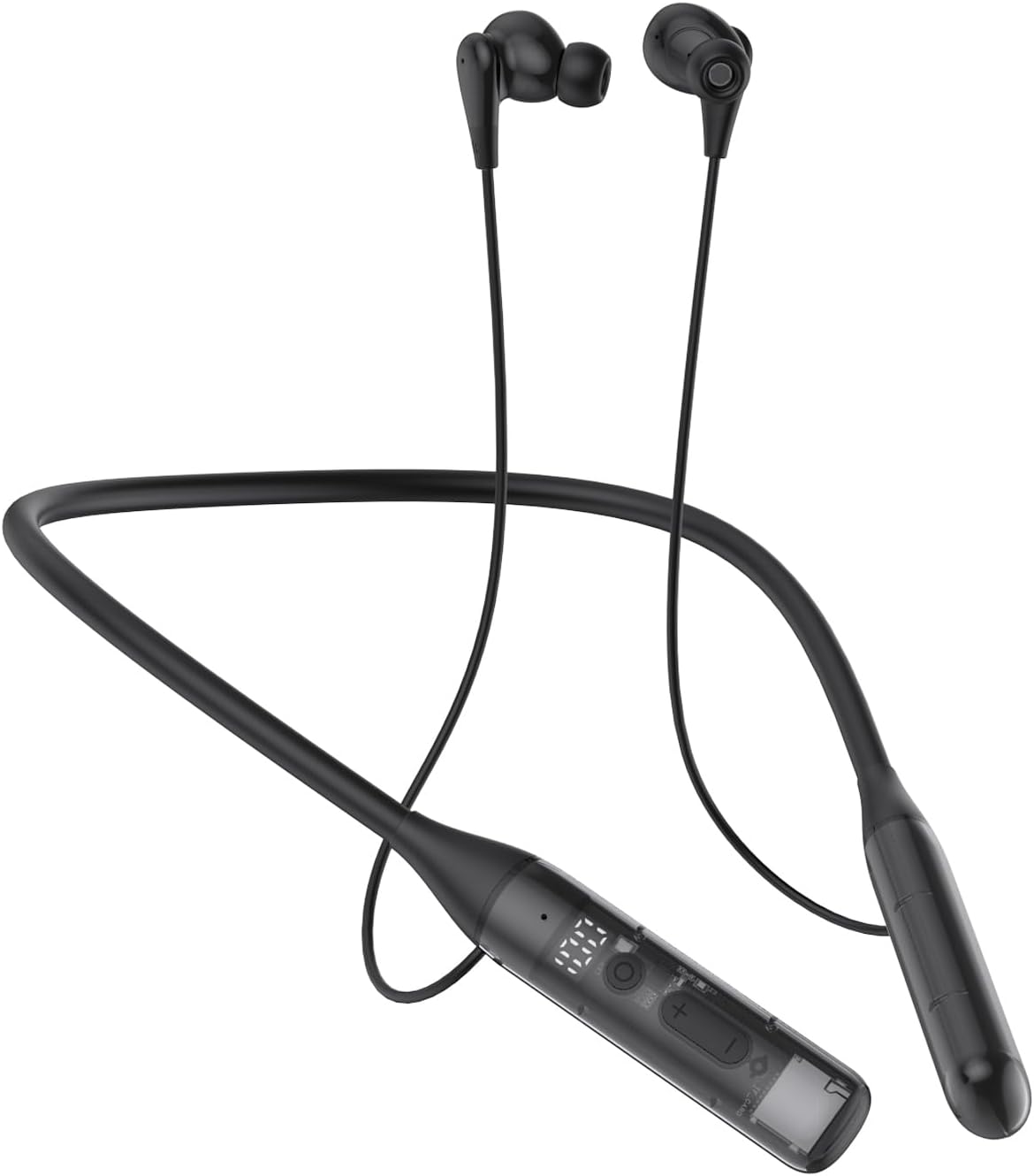 【100 Hours Playback】: The wireless neckband headphones are equipped with a lithium-ion large-capacity battery and a low-power smart chip, with a total use time of more than 100 hours and a high battery life to meet the user's power needs. The wireless headphones are also equipped with a display percentage battery and a volume adjustment display, which can always keep an eye on power changes and complete intelligent charging.