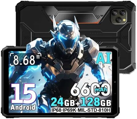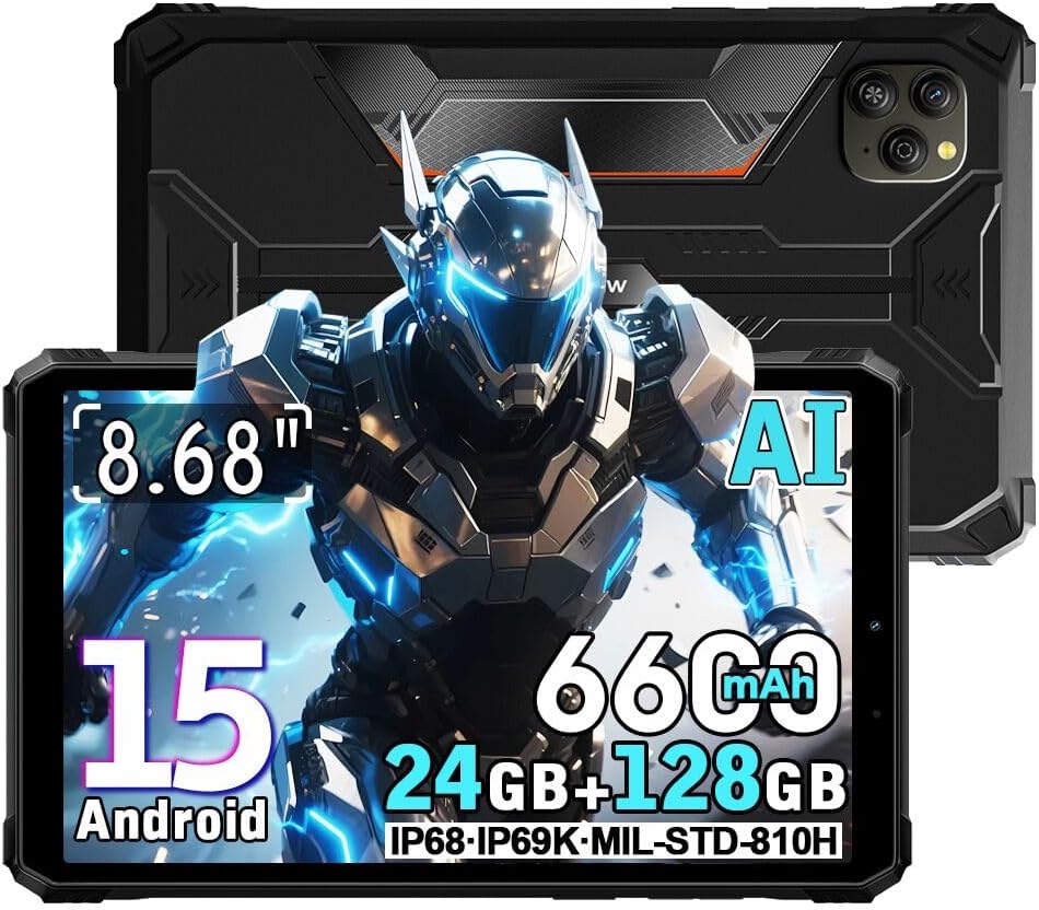 Blackview Active 5 AI Rugged Tablet 2025,8.68" HD+ 90Hz Android 15 Waterproof Tablet,24GB+128GB/2TB,16MP+13MP,6600mAh Battery,4G Dual SIM/IP68/NFC/OTG/GPS (Black)