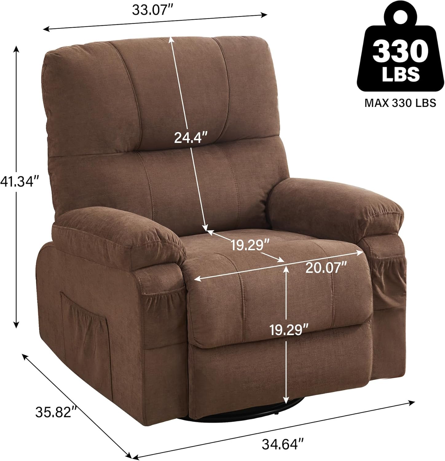 Massage Swivel Recliner Chair, Oversized Rocker Recliner with Side Pocket, 2 Cup Holders for Living Room