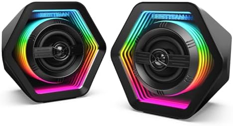 BESTISAN Computer Gaming Speakers with 8 RGB Modes, Compact Design, DC Powered Desktop Speaker with 3 EQ Modes, 50W Active Speakers with Bluetooth 5.3, AUX in, Headphone, Type-C Port for PC/Laptop/TV