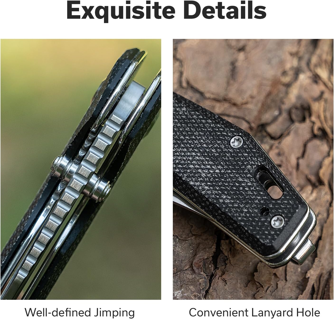 Exquisite Details: Well-defined jimping, a convenient lanyard hole, and refined craftsmanship enhance both style and functionality on this folding knife