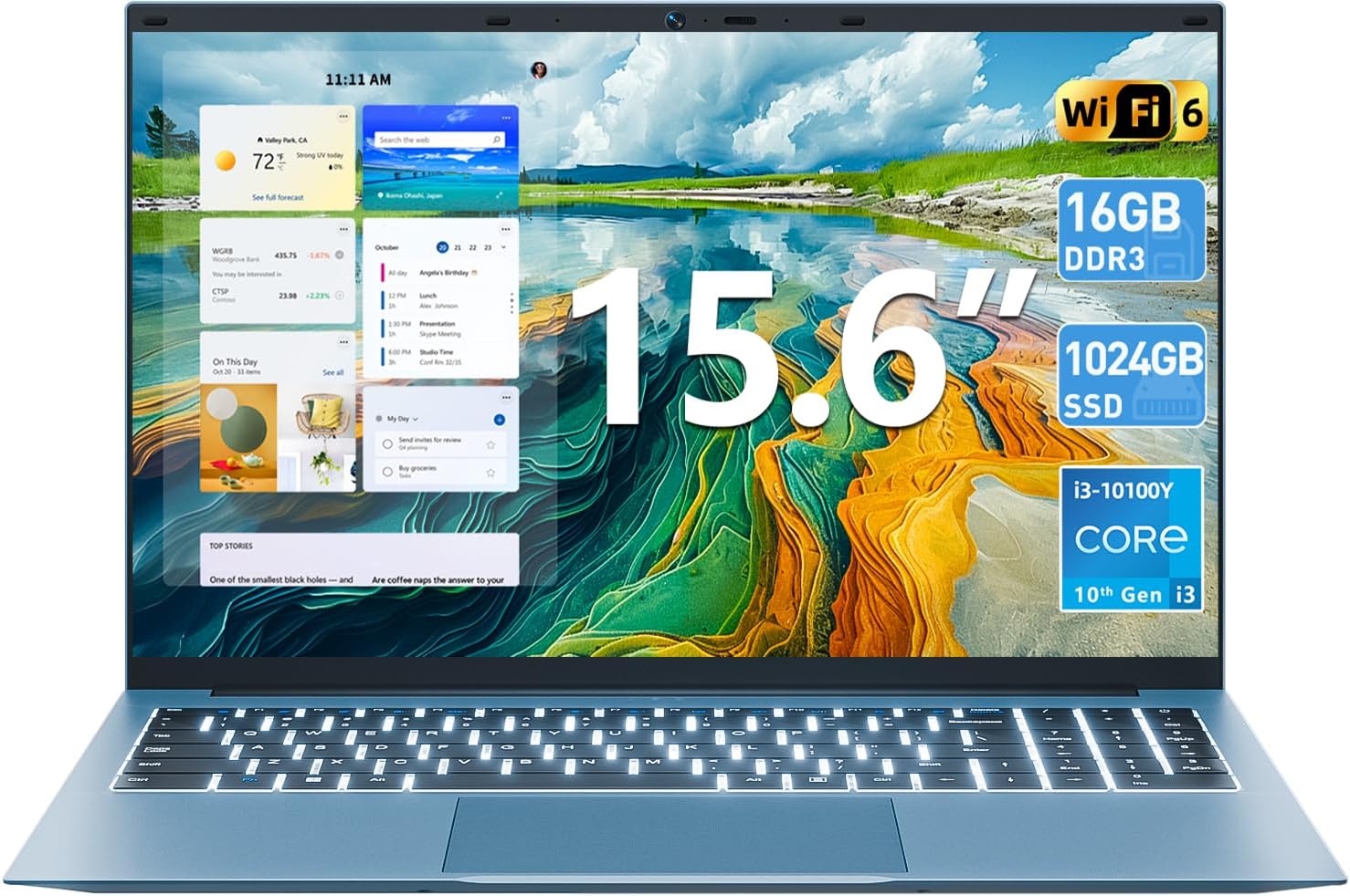 SGIN 15.6 Inch Laptop 16GB RAM 1024GB ROM, FHD IPS Screen, Core I3 (up to 3.9GHz), Win 11, Portable Notebook, 7000mAh, WiFi 6, 180° Open Angle, Backlit Keyboard