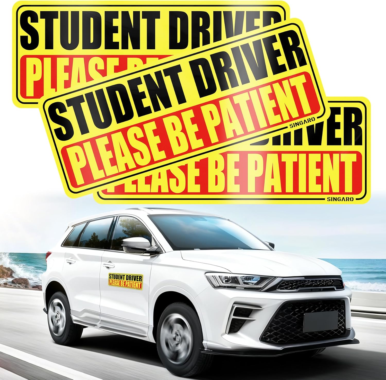 SINGARO Student Driver Magnet for Car - Please Be Patient, 3Pcs Magnetic Reflective Novice Sticker, New Driver Decal, Removable Exterior Car Accessories