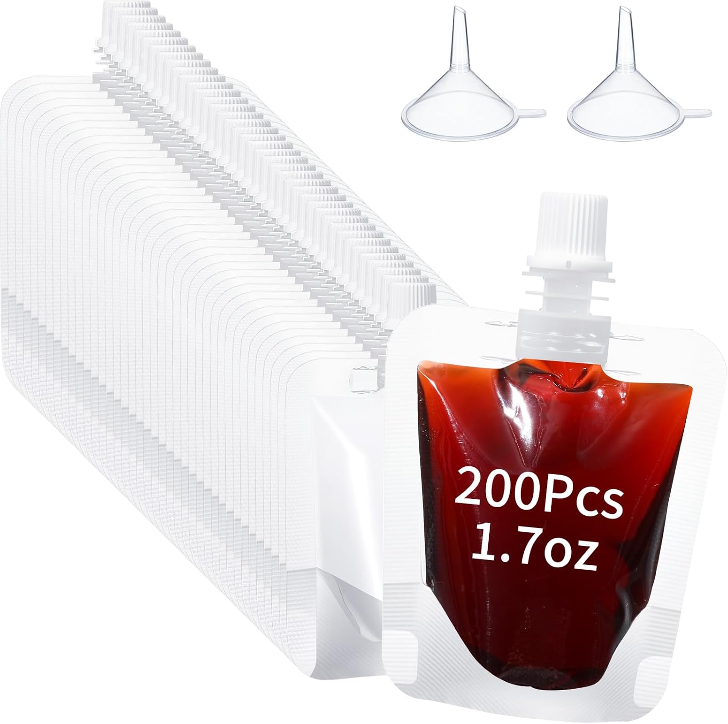 200 Pcs Plastic Flasks Disposable Drink Pouches Clear Juice Bags Salsa Leakproof Squeeze Pouches for Travel (1.7 oz)