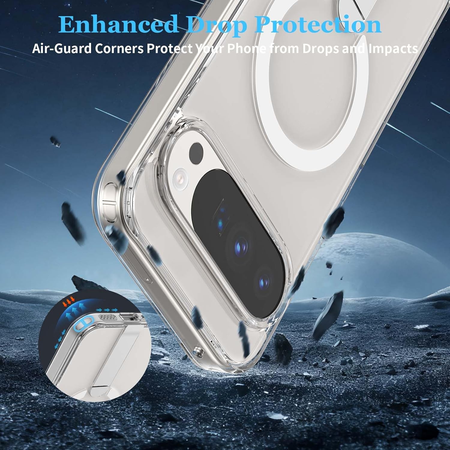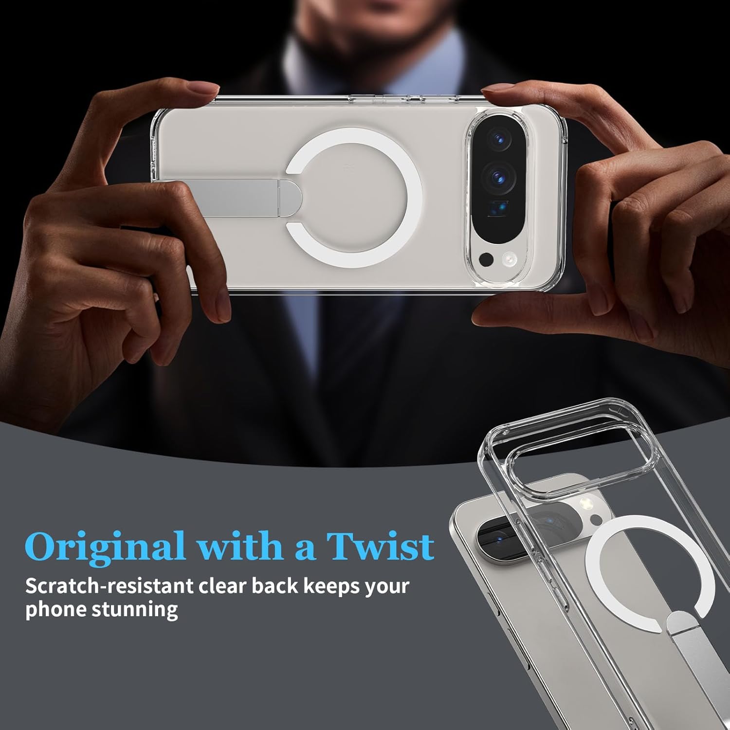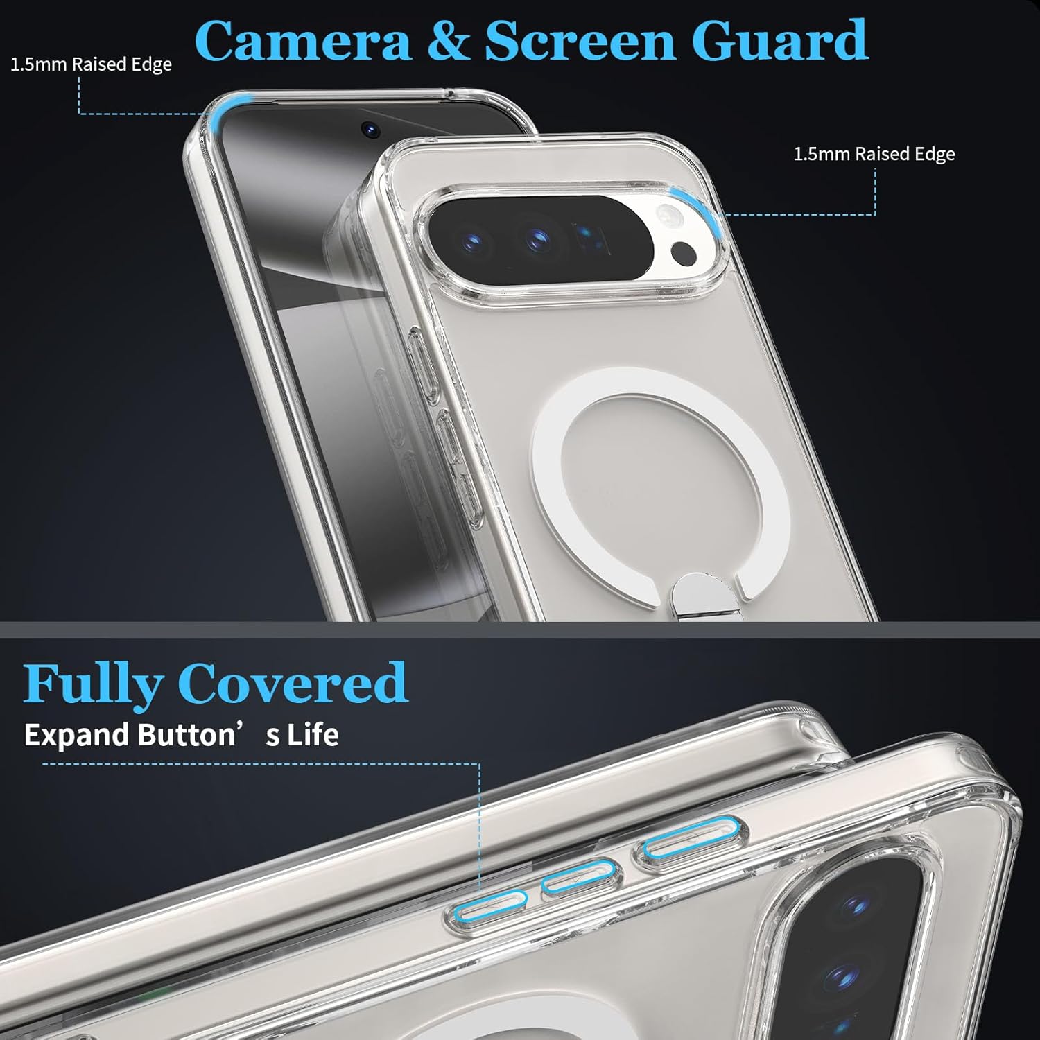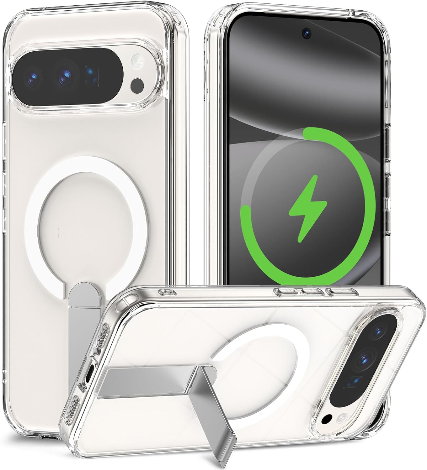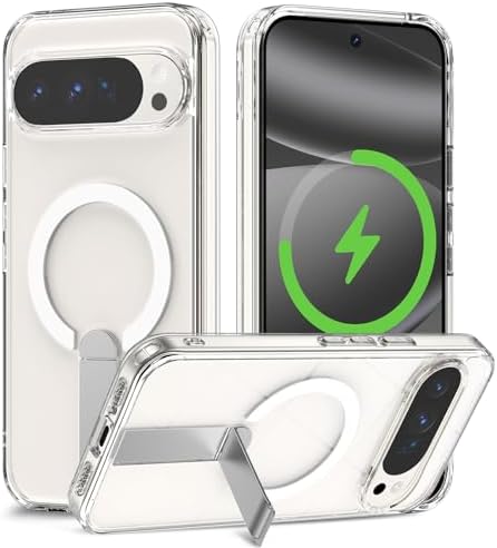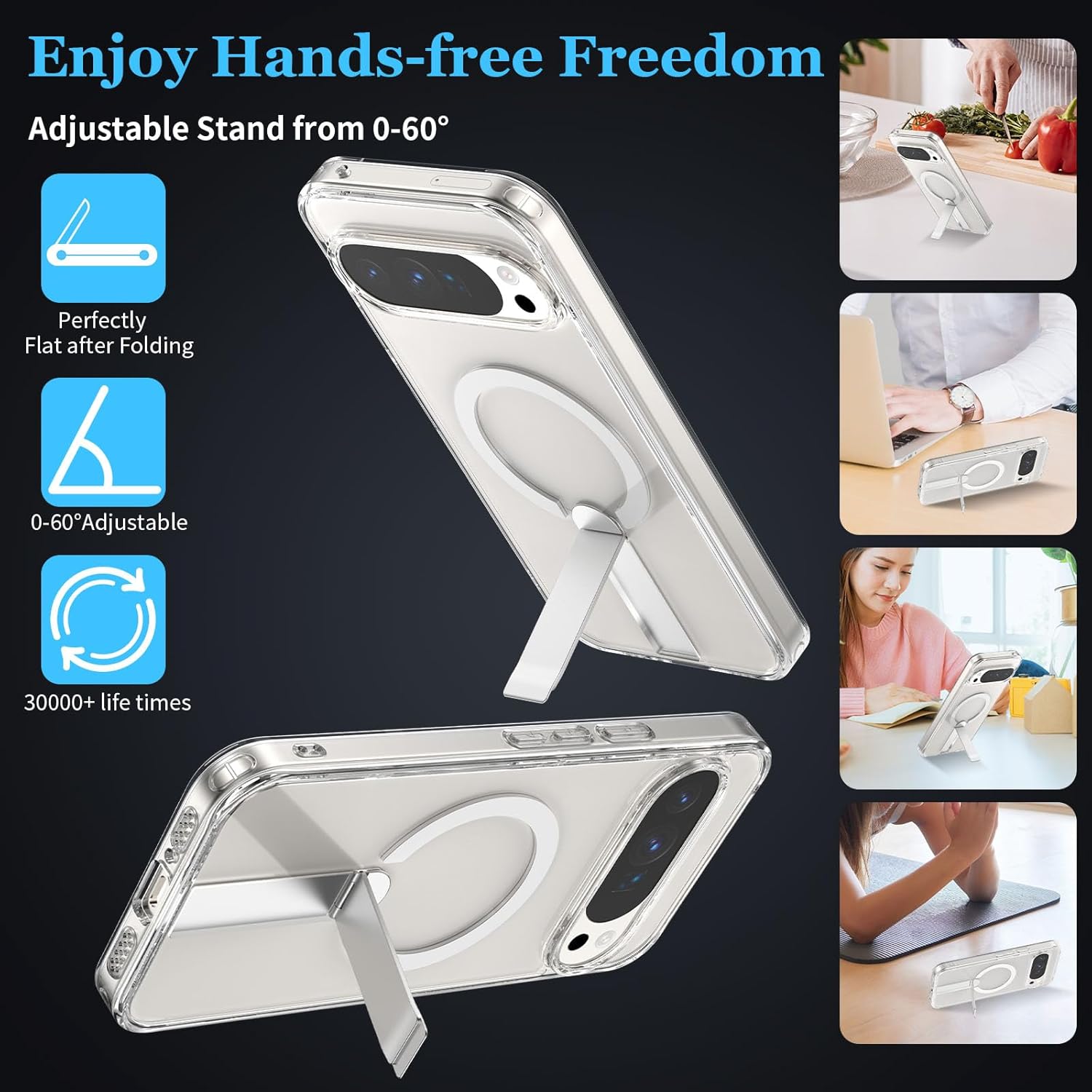 ACANDYA for Google Pixel 10 Pro XL Case Pixel 9 Pro XL Case Magnetic Stand Holder Kickstand Clear Compatible with Magsafe Military Grade Drop Protection Heavy Duty Shockproof Cover Transparent