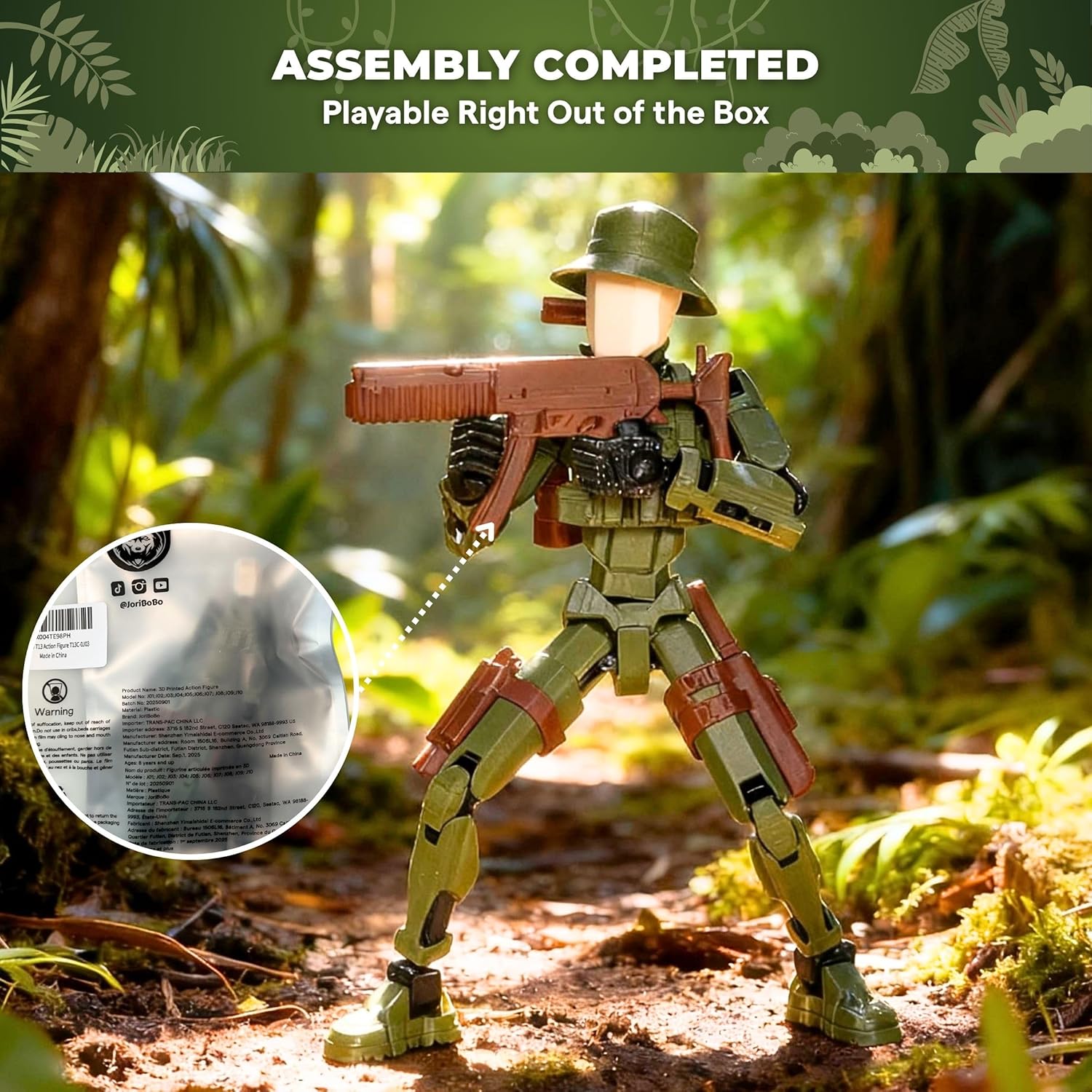T13 Action Figure (Dummy 13 / Titan 13), Jungle Soldier - 3D Printed Poseable Robot with Accessories for Stop Motion Animation | Kids Gift