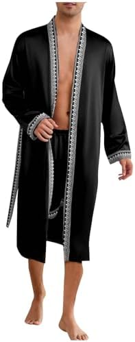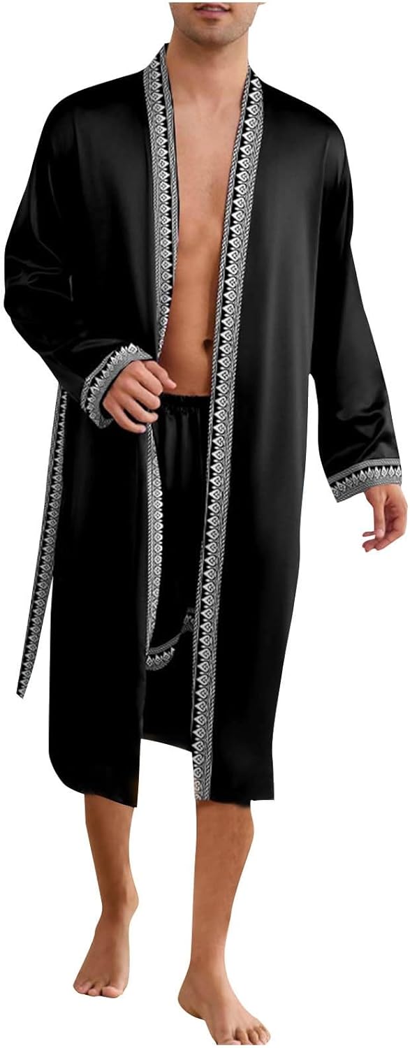 Xiaojmake Satin Robe for Men Lightweight 2 PCs Nightwear Silky Kimono Sleepwear with Shorts Open Front Belted Long Cardigan