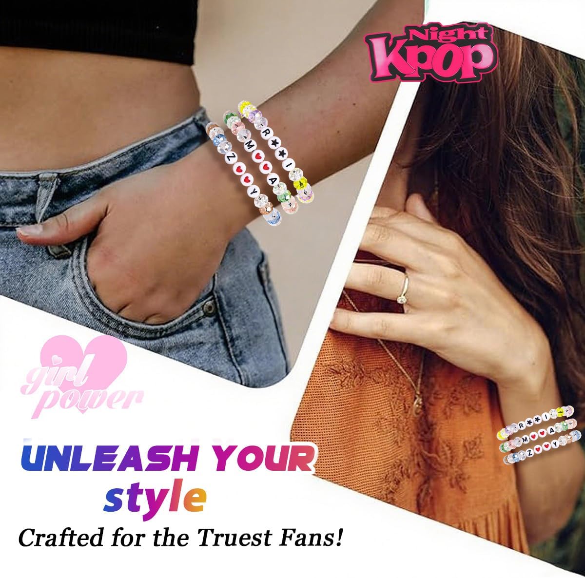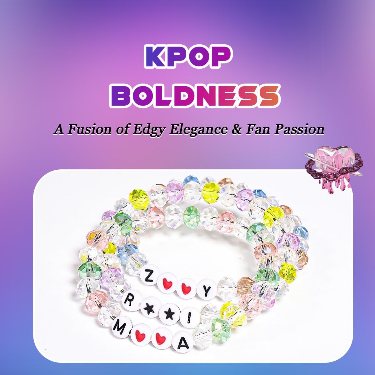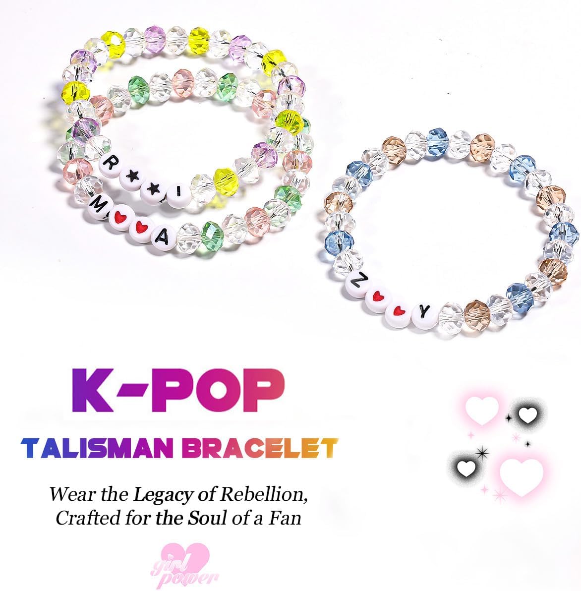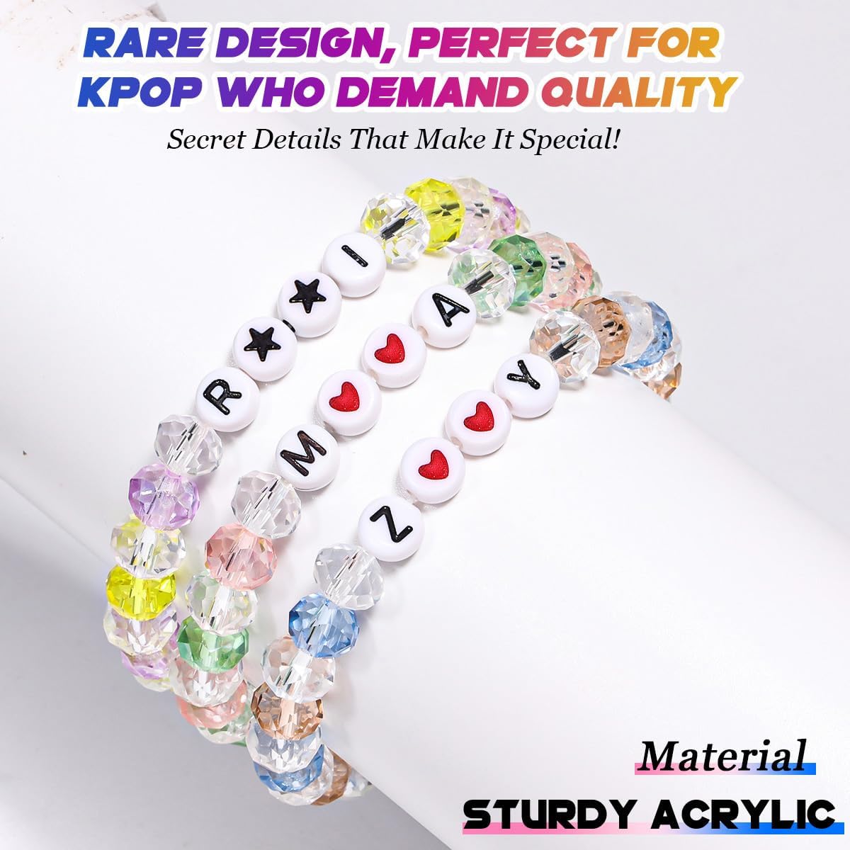 AICase for Kpop Merch Inspired Bracelets 3 Pcs Stackable Stretch Friendship Beaded Bracelets for k pop Unique Merchandise Jewelry Gifts for Fans Women Men Stocking Stuffers_Crystal
