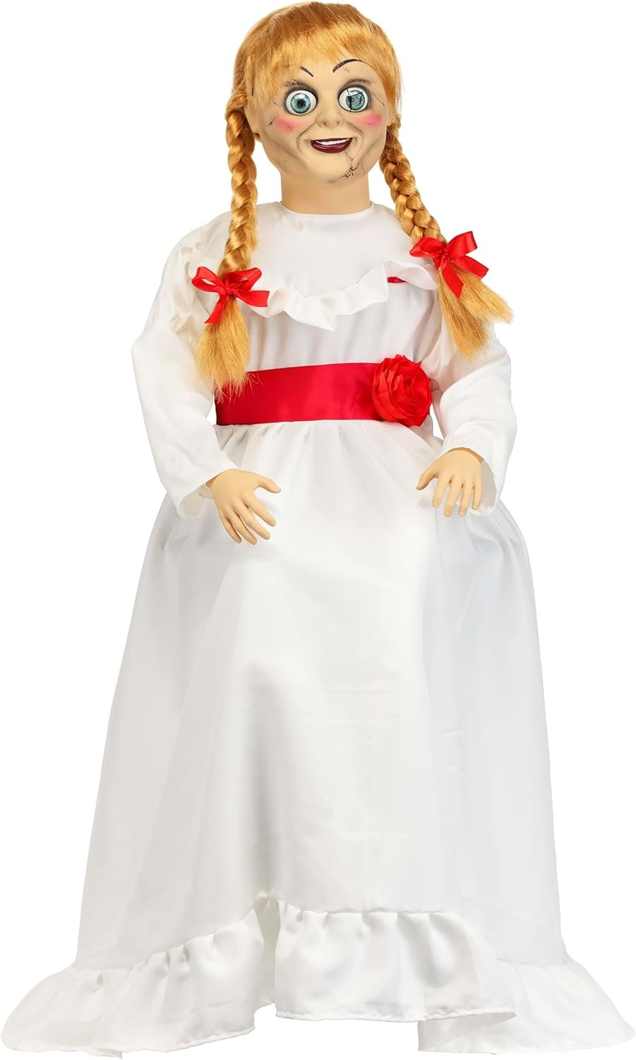 EVIL DOLL: Straight from the terrifying world of the hit horror films, this 25-inch animatronic doll captures the sinister presence of Annabelle, making it the perfect Halloween centerpiece for fans of the franchise.