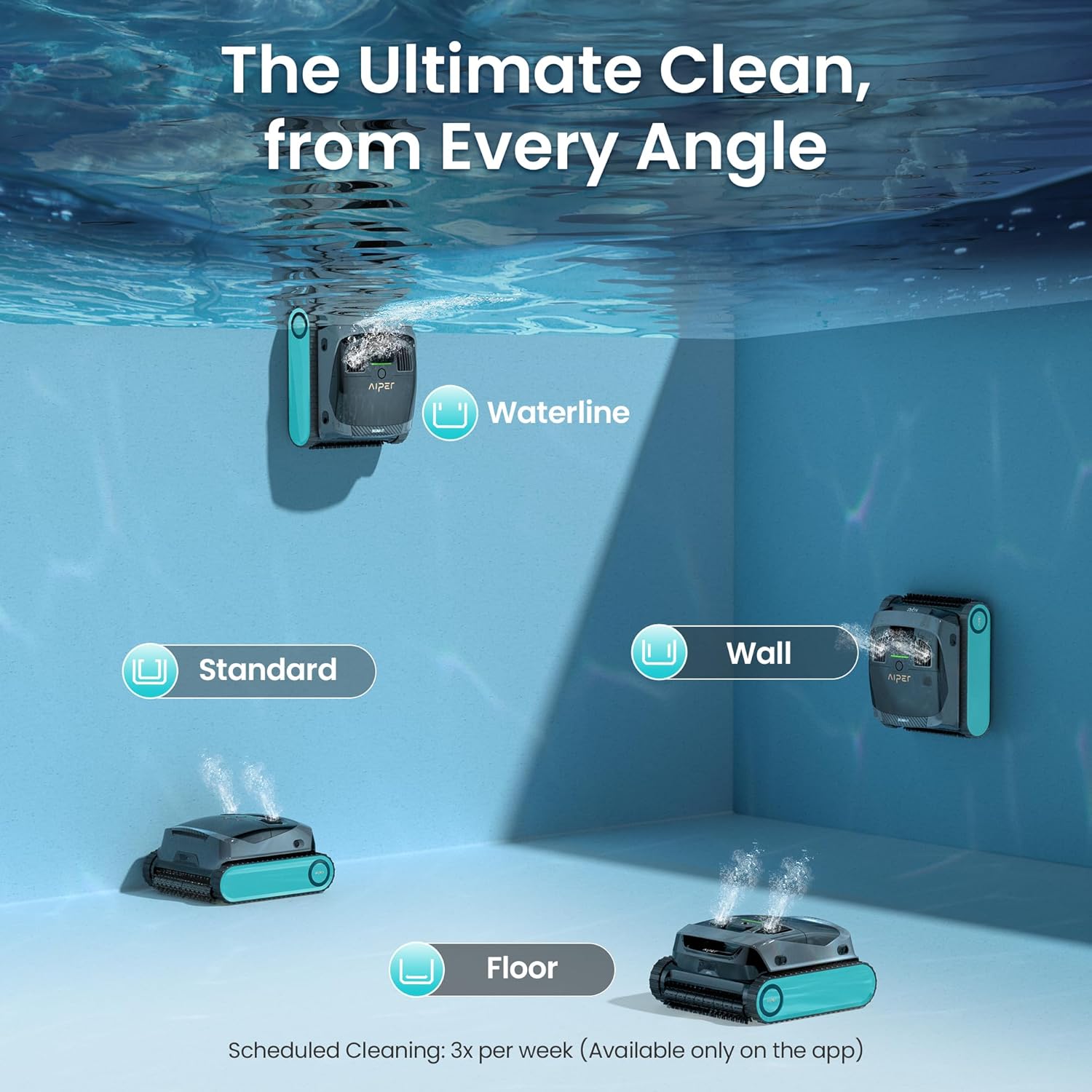 AIPER Scuba X1 Cordless Robotic Pool Cleaner, Upgraded Battery Life and Cross Pattern Smart Navigation, Horizontal Waterline Scrubbing, Ideal for Inground Pools up to 2,150 sq.ft