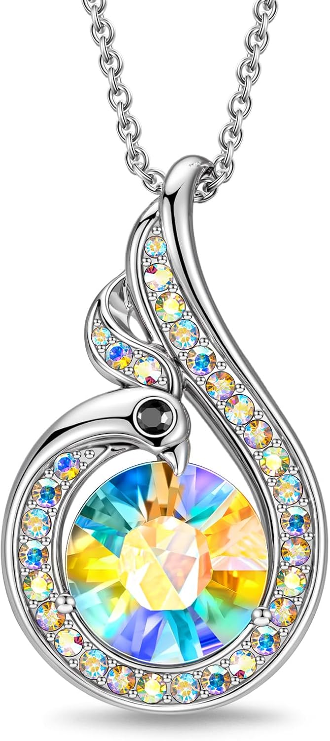 Kate Lynn Rise From the Ashes Phoenix Necklaces for Women, White Gold Plated Crystal Jewelry, Birthday Gift for Women, Symbol of Luck and Renewal, 18+2 inch, Packaged with Jewelry Box