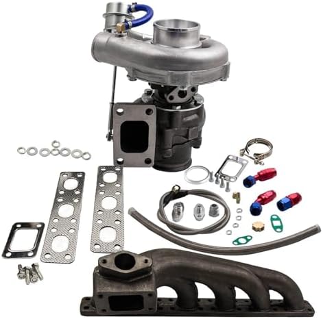 T3/ T04E V-band Turbocharger Internal Wastegate+Turbo Manifold Compatible for BMW E36 E46* This is universal application turbo, so modification might be required for some vehicles.Fits:Compatible For BMW E36 328I / 328IS i6 1994-1999Compatible For BMW E36 323I i6 1995-1999Compatible For BMW E36 M3 i6 1992-1999Compatible For BMW E46 323I / 323IS / 323CI / 323TI i6 1997-2000Compatible For BMW E46 328I / 328CI i6 1998-2000Compatible For BMW E46 325I / 325CI / 325XI / 325TI i6 2001-2007Compatible For BMW E46 330I / 330CI / 330XI i6 2000-2007(Not fit E46 M3 3.2L)(Fits M50/ M52/ M54/ S50/ S52 Engine ) Please Check Compatibilities for Years and ModelsAbout T3/ T04E TurbochargerExhaust (Turbo Manifold) Flange: T3 4 bolt Flange PatternsExhaust Flange: V-Band FlangeCooling Type: Oil CooledWastegate: Internal WastegateHorse Power: Boost Horse Power up to 420HPCompressor:Trim: 44Inducer Diameter:50.5 mmExducer Diameter:76 mmA/R:0.5Turbine:Trim:73Inducer Diameter:65.5 mmExducer Diameter:55.9 mmA/R:0.63Bearing Type:Floating Bearing*Professional Installer is Highly Recommended (No Instruction Included)Turbo Oil Feed Line + Turbo Oil Feed Line:* OIL RETURN LINE: Length: 550mm || Inner Diameter: 21mm * OIL FEED LINE: Length: 1000mm || Inner Diameter: 14mmWelcome to Auto Parts Home – your go-to auto parts expert!Whether you need daily maintenance parts, performance upgrade components, or replacement parts for troubleshooting, we have a carefully selected range of high-quality options that fit multiple vehicle brands and models. We understand how much you care about your car: we rigorously check everything from materials to compatibility, and also provide clear installation guides and attentive after-sales service.