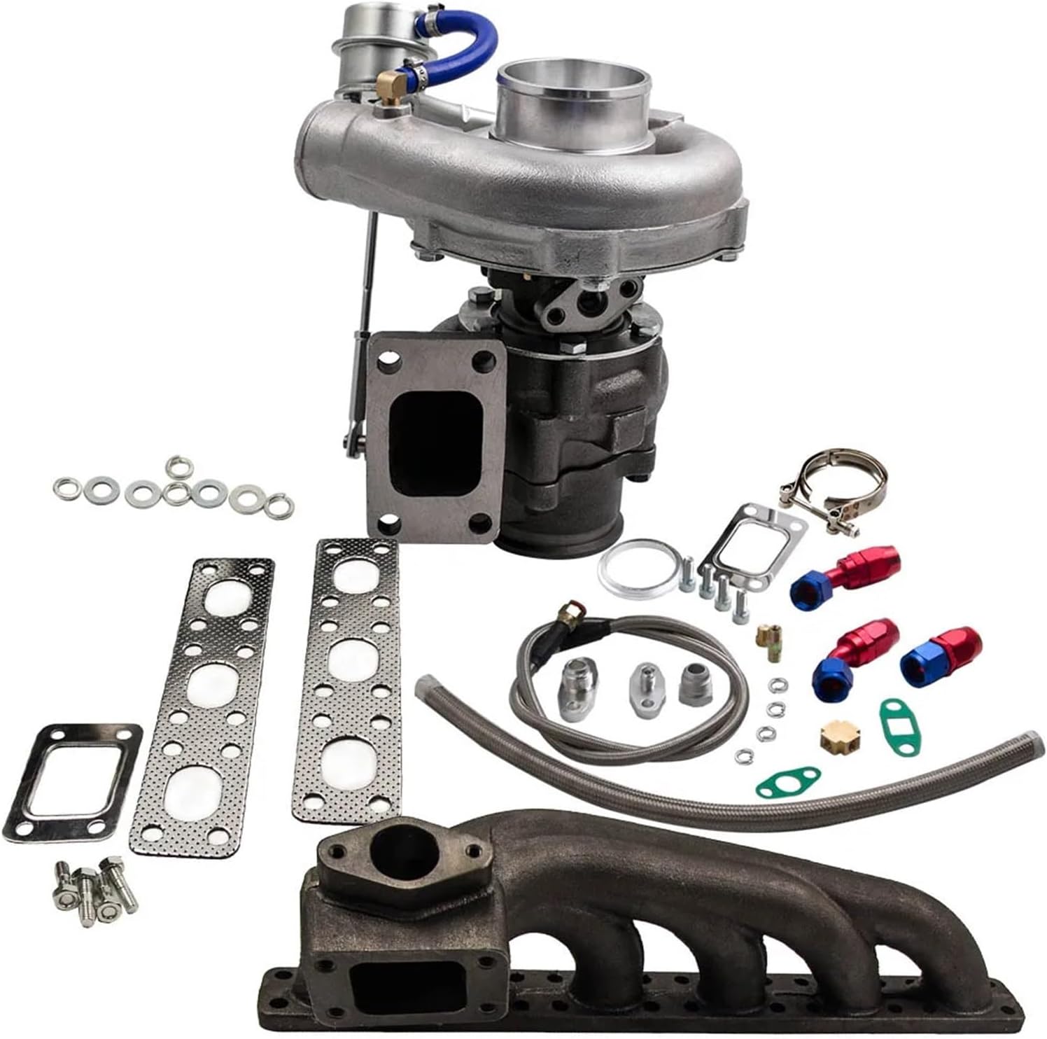 T3 T04E V-band Turbocharger +Turbo Manifold Compatible For BMW E39 E38 E36 E46 Z3 M52 M50 + Oil Line Kit