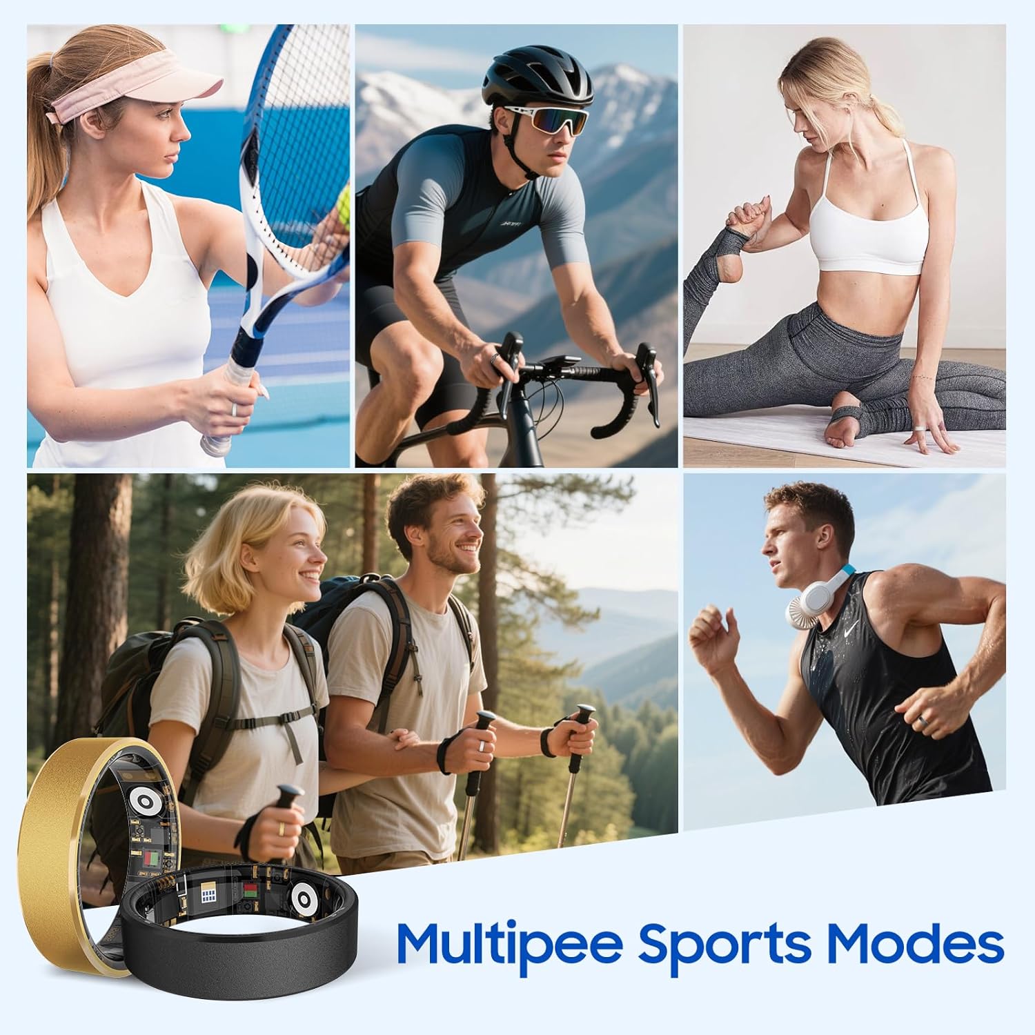 Smart Health Ring, Featuring Heart Rate, Stress and Sleep Monitoring Functions, Compatible with iPhone and Android, Waterproof Fitness Tracker for Women & Men, No Subscription Fee. (Gold, 9)