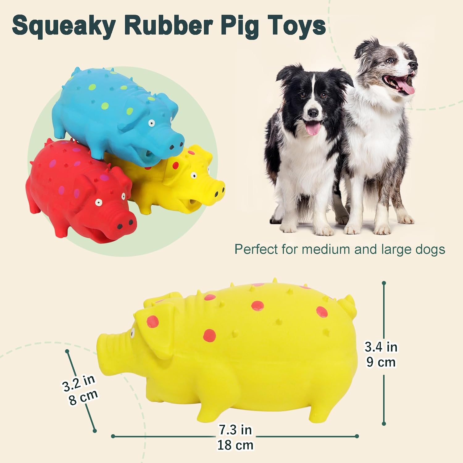 Easy to pick up: These pig toys have many raised particles on the back, providing a soft and comfortable experience for the dog's gums. Even when toys get wet with saliva, dogs can still easily pick up toy pigs with their mouths!