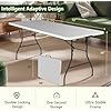 【Foldable & Portable Table Design】This 6ft portable table measures 72" (L) × 29.63" (W) × 29.25" (H) -comfortably seating 6 to 8 adults. Features a half-fold tabletop with built-in handles. It weighs just 22.62 lb, making it effortless to carry and transport. When folded, it stores easily in closets, under beds, or car trunks-perfect for transitioning from indoor meals to outdoor adventures. A true space-saving portable table for all your needs.