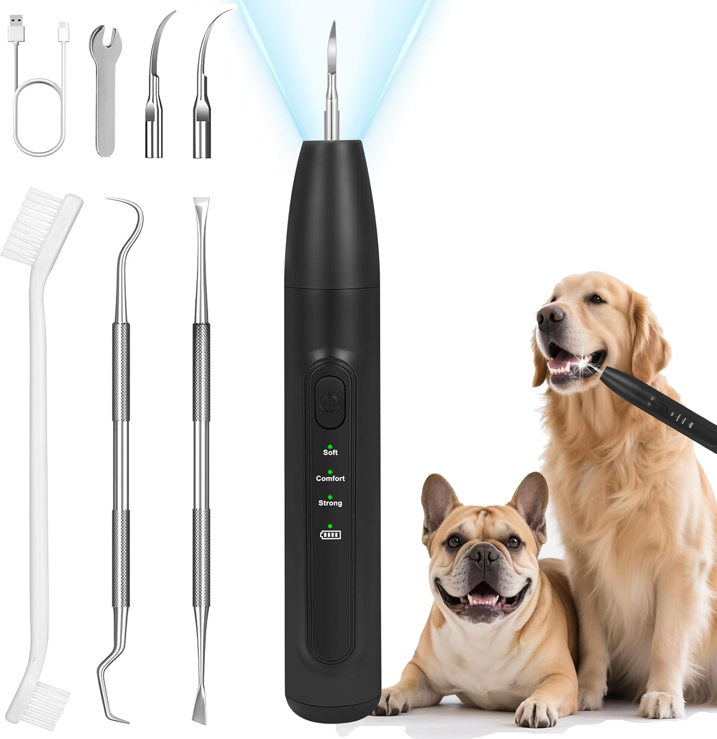Dog Tooth Brushing Kit, Dog Teeth Cleaning Kit with Led Light, 3 Modes Dogs Plaque and Tartar Remover, Rare Pet Canident - Sonic Tooth Cleaner for Doggies and Cats, Obsidian
