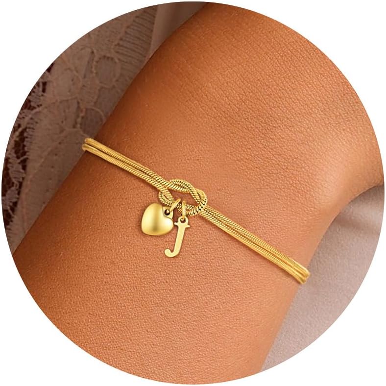 M MOOHAM Initial Knot Bracelets for Women - 18K Gold Plated Initial Knot Bracelets for Women Teen Girls, Trendy Letter A-Z Love Charm Bracelet Dainty Jewelry Womens Bridesmaid Birthday Gifts