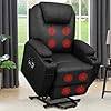 Flamaker Power Lift Recliner Chair with Vibration Massage for Elderly Ergonomic Lounge Chair Classic Single Sofa with Cup Holders Side Pockets for Living Room (Black)