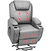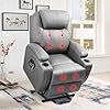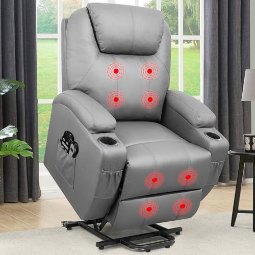 Flamaker Power Lift Recliner Chair with Vibration Massage for Elderly Ergonomic Lounge Chair Classic Single Sofa with Cup Holders Side Pockets for Living Room (Gray)