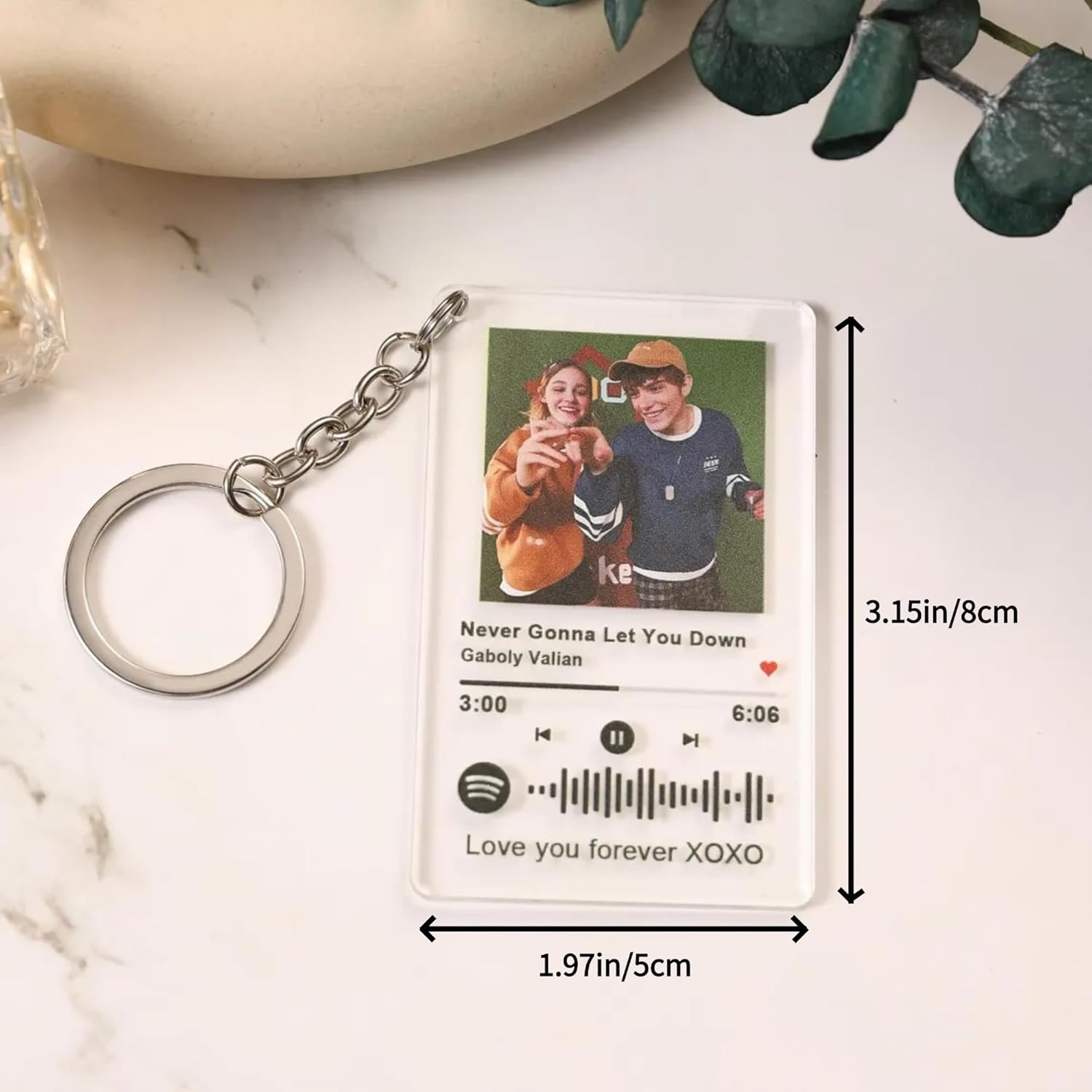 Custom Spotify Keychain with Picture Personalized Acrylic Music Plaque with Scannable Song Code Album Cover Gift for Couple, Boyfriend