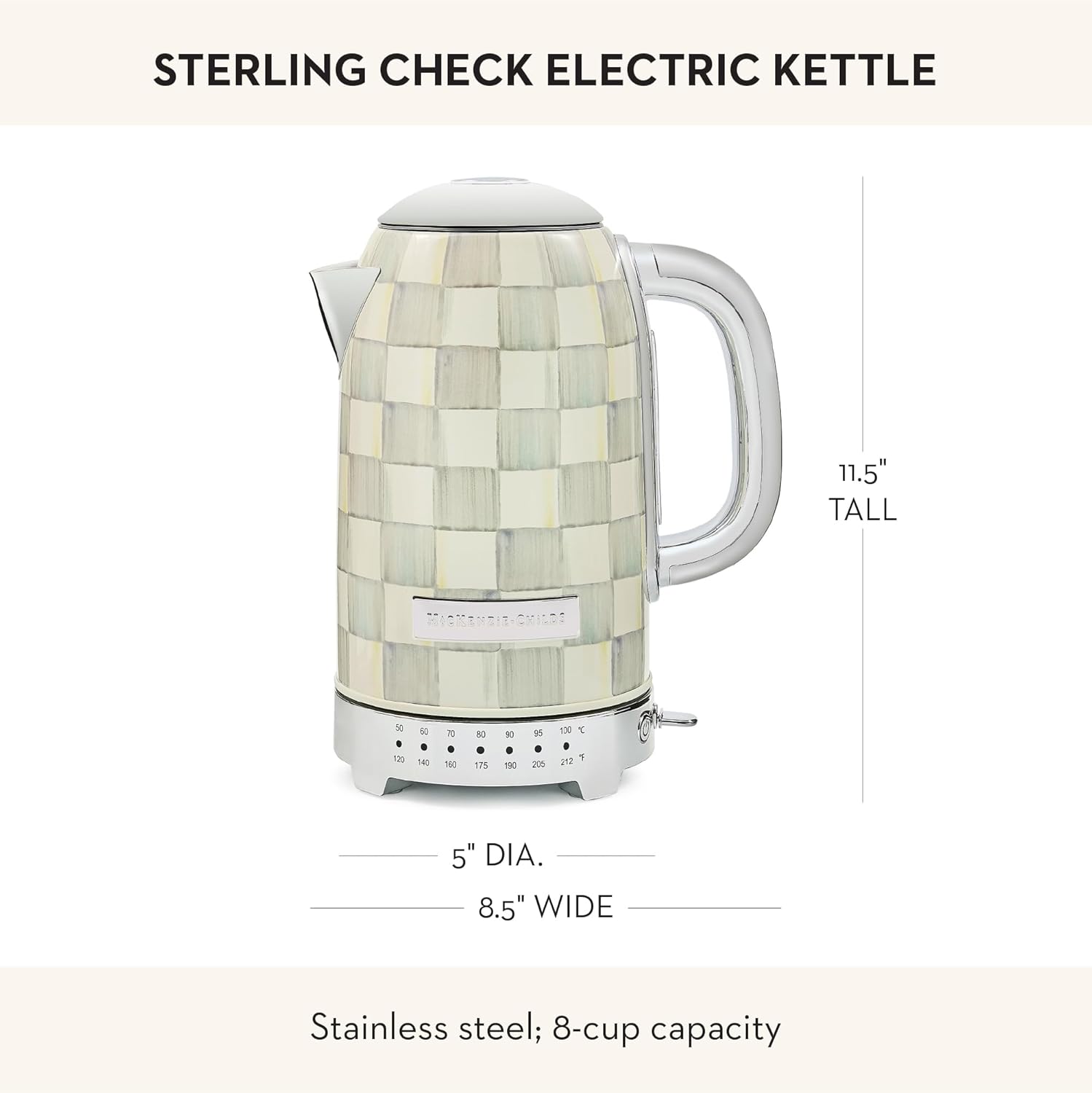 MACKENZIE-CHILDS Stainless-Steel Electric Kettle Bundle with Stainless-Steel 2-Slice Toaster, Gray-and-White Sterling Check