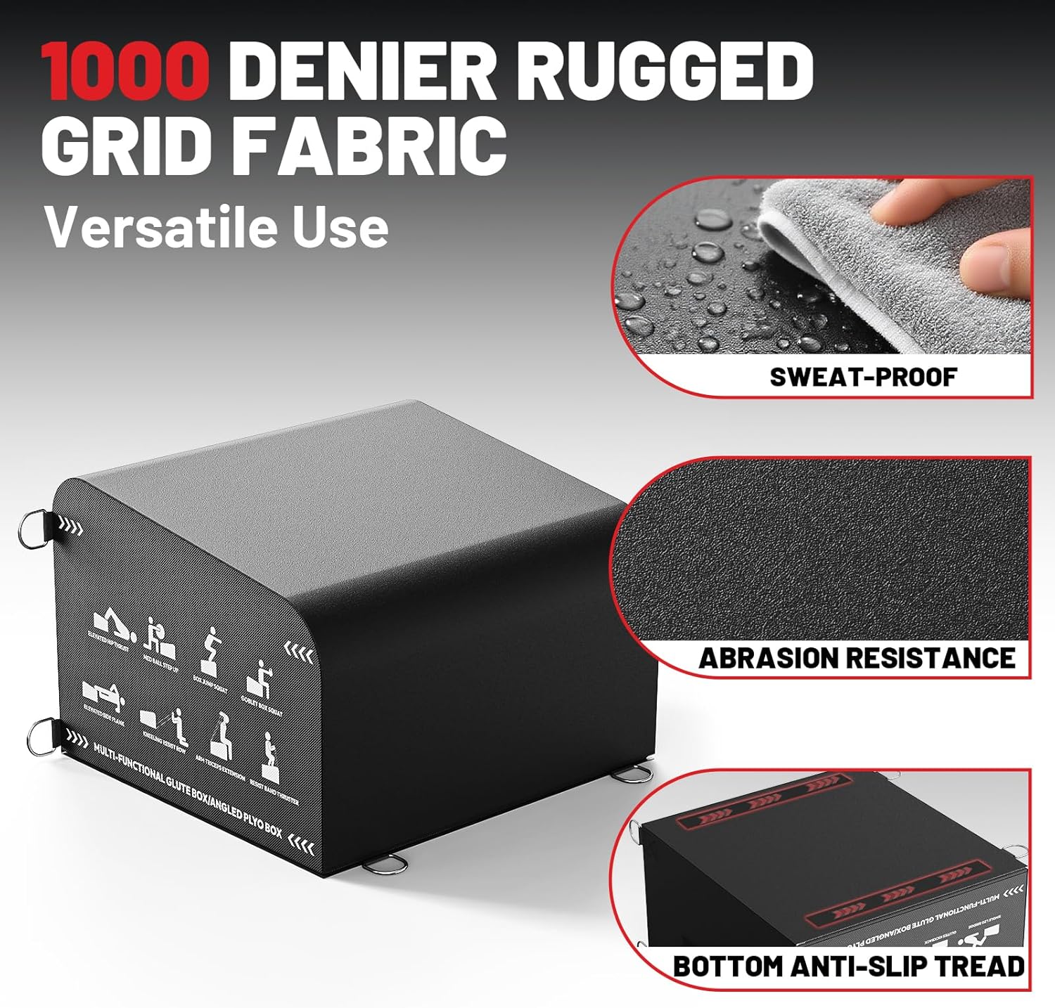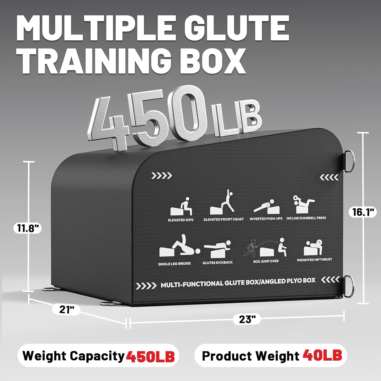 [Portable Convenience]: With compact dimensions of 23" L x 21" W x 16" H, this glute box takes up minimal space—so you can perform hip thrusts anytime, anywhere. It also features a convenient carry strap on the back for easy portability.