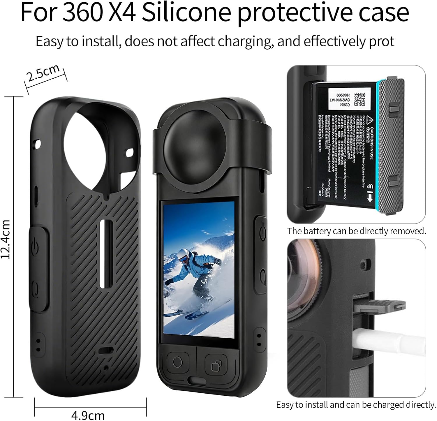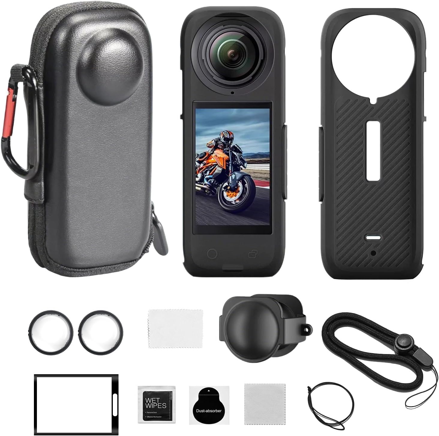 JasonMighty For Insta 360 X4 Camera Protective Accessories Kit Include Camera Case/Silicone Case/Lens Guards/Screen Tempered Glass/fully Protect Parts