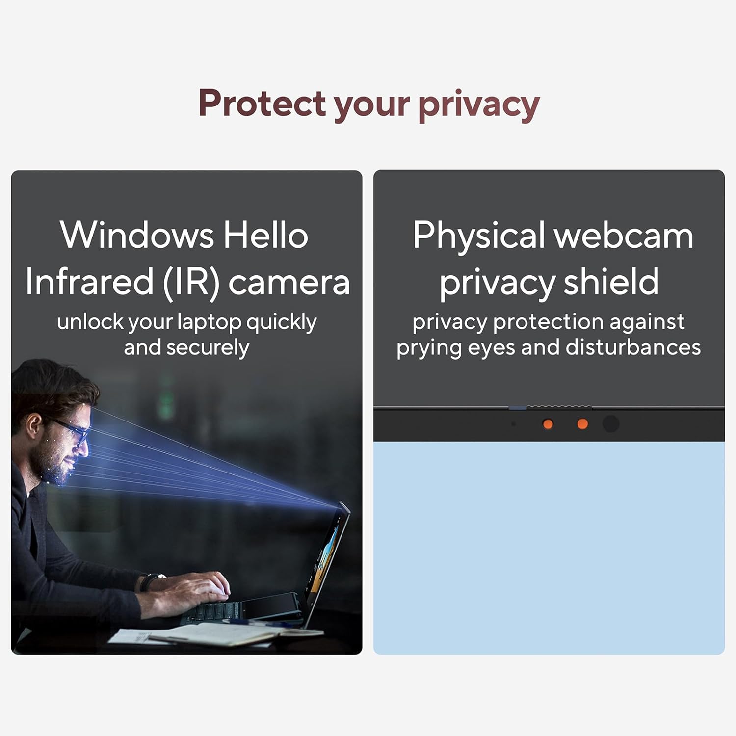 Enhanced Productivity & Immersive Features:​​ Work and create comfortably with a backlit keyboard, precision touchpad, and AI-enhanced 1080p IR webcam (privacy shutter, Windows Hello). Experience powerful, crystal-clear Dolby Atmos sound tuned by Harman Kardon and comprehensive ports including Thunderbolt 4