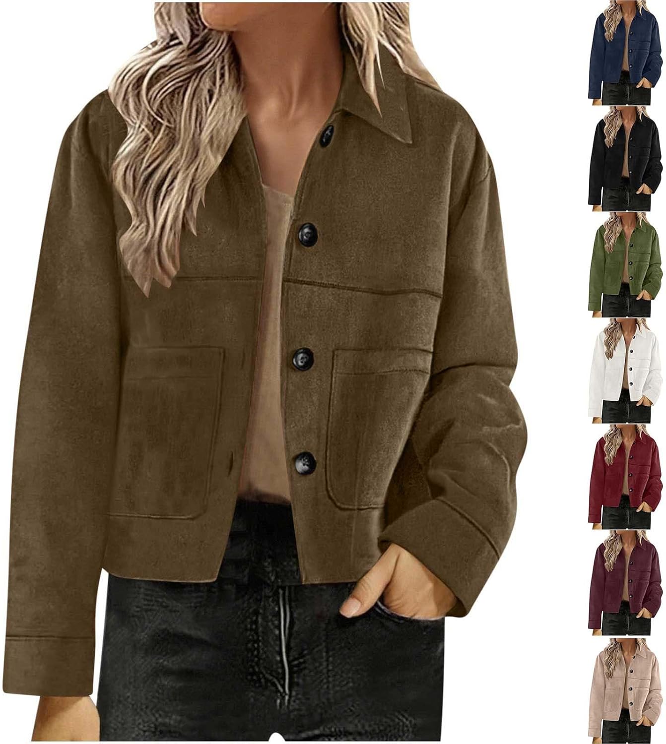 Suede Jackets For Women 2025 Casual Button Down Cropped Jacket Fall Long Sleeve Outerwear Coats Work Office Clothes