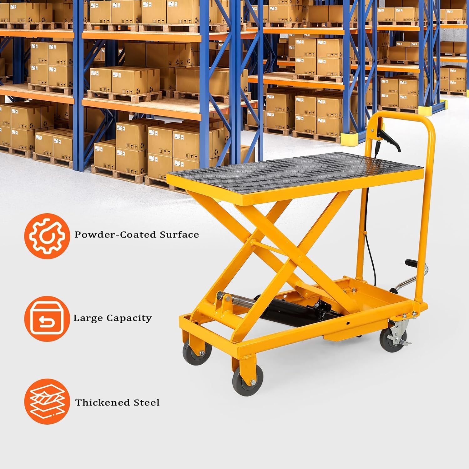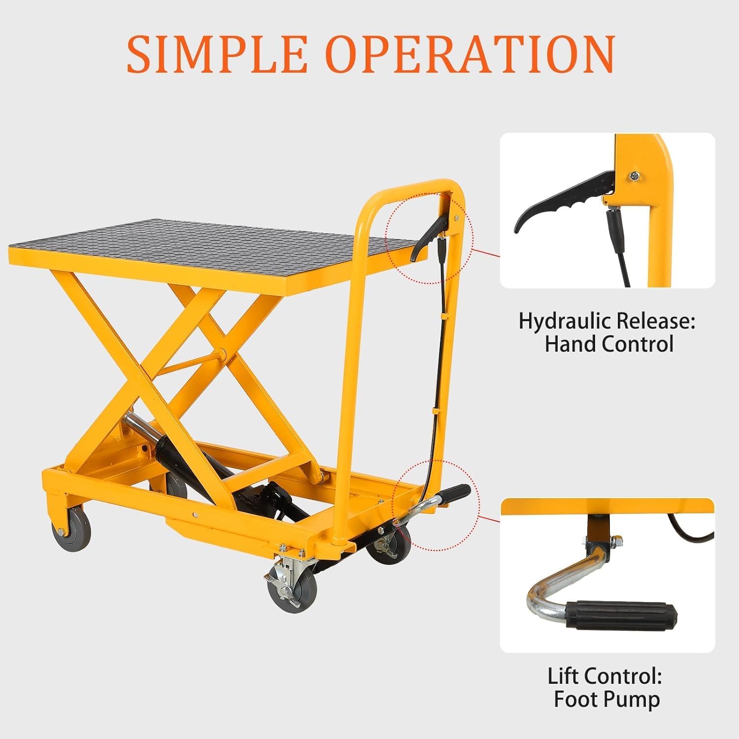 Exceptional 500 lbs Load Capacity:Our hydraulic lift table cart engineered for strength, this hydraulic lift table supports up to 500 lbs—perfect for industrial, warehouse, and heavy-duty material handling applications.