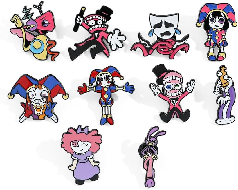 TADC-Series Inspired Character Metal Pins Set – 10pcs Cute Cartoon Badges, AMZ Digital Circus-Themed Gift Collectibles
