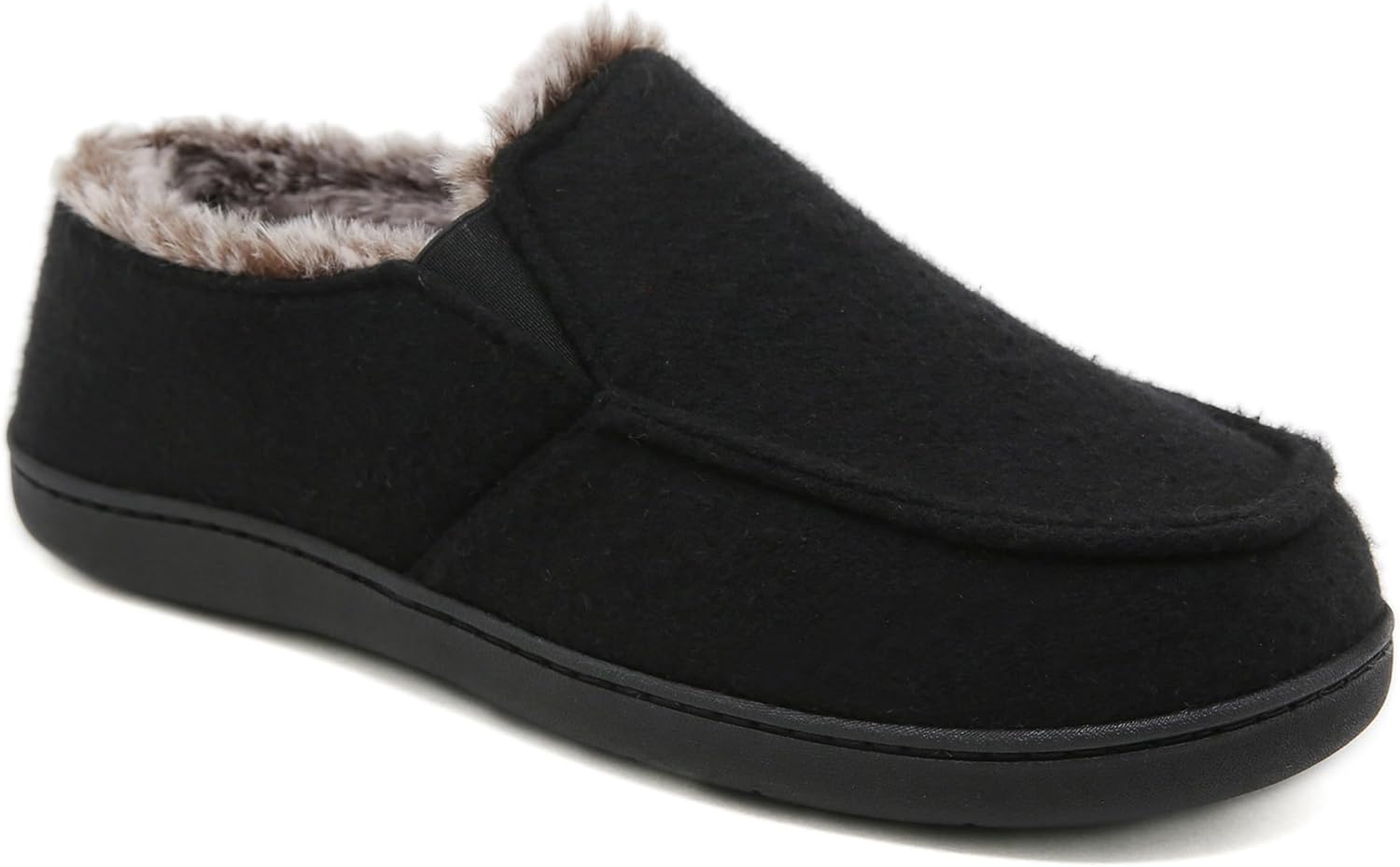 Men's Slip On Moccasin Slippers Comfy Memory Foam House Shoes Warm Fuzzy Breathable Loafer Wide Slippers Indoor/Outdoor Rubber Sole