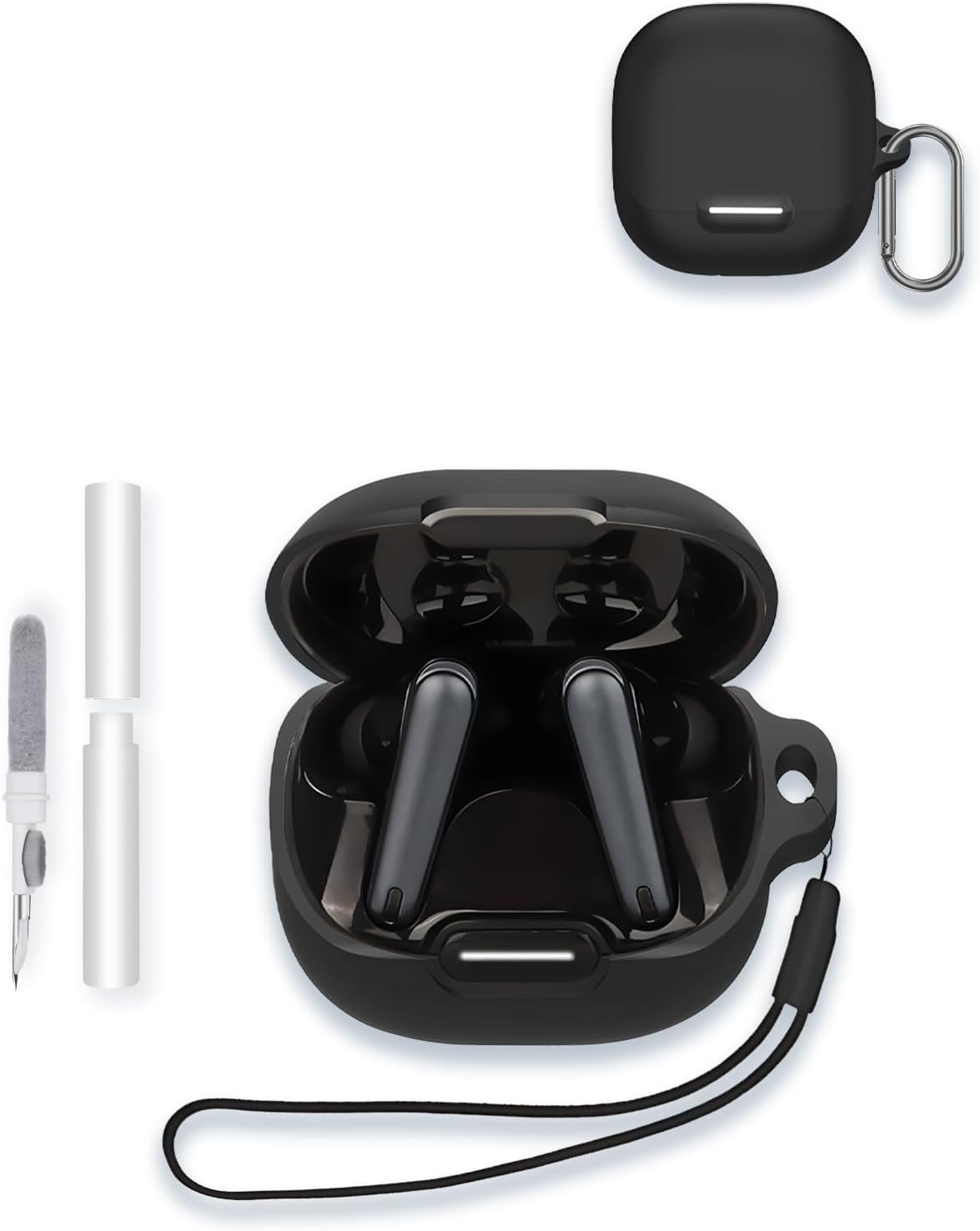Case for Soundcore by Anker Liberty 4 NC Wireless Earbuds, WUNIAK Soft Silicone Protective Portable Scratch Shock Resistant Shell with Cleaner Kit & Carabiner & Lanyard,Black