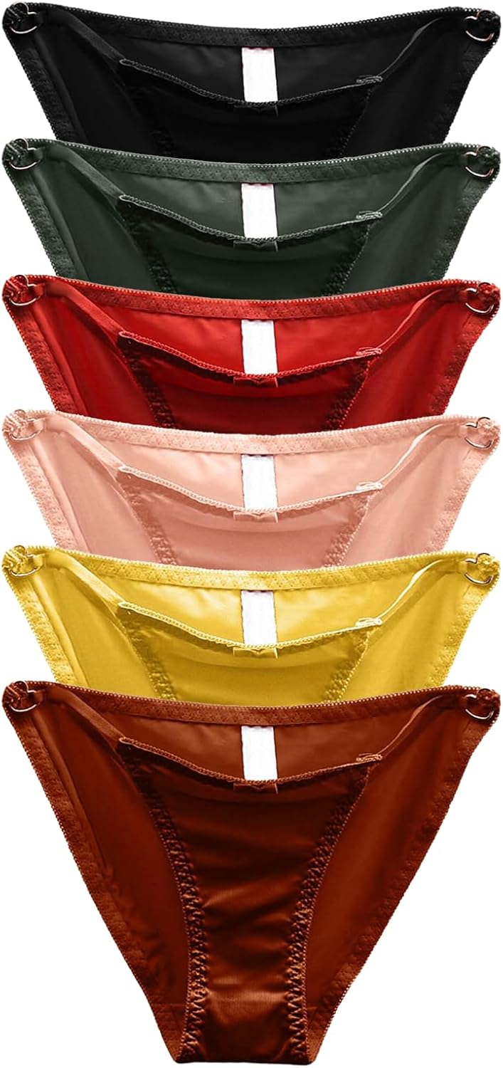 Women's Sexy Satin Panties Lace Silk Underwear Low Waist G-String Panty Breathable String Bikini Briefs 6 Pack