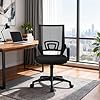BestOffice | Ergonomic Office Chair | Mid-Back Swivel Desk Chair | Breathable Backrest & Lumbar Support | Adjustable Height | Sponge Seat | Rolling Wheels | Dark Black | for Adults & Women