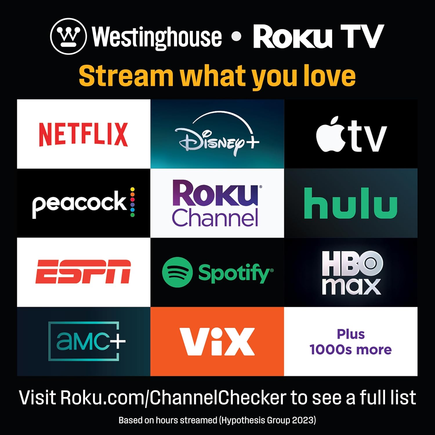 ROKU SMART TV EXPERIENCE: Built-in Roku TV OS delivers instant access to 350+ free live TV channels and thousands of top streaming apps including Netflix, Prime Video, Disney+, Hulu, and YouTube TV. Enjoy America’s #1 streaming platform with an easy-to-use interface, fast search, and personalized recommendations for endless entertainment.