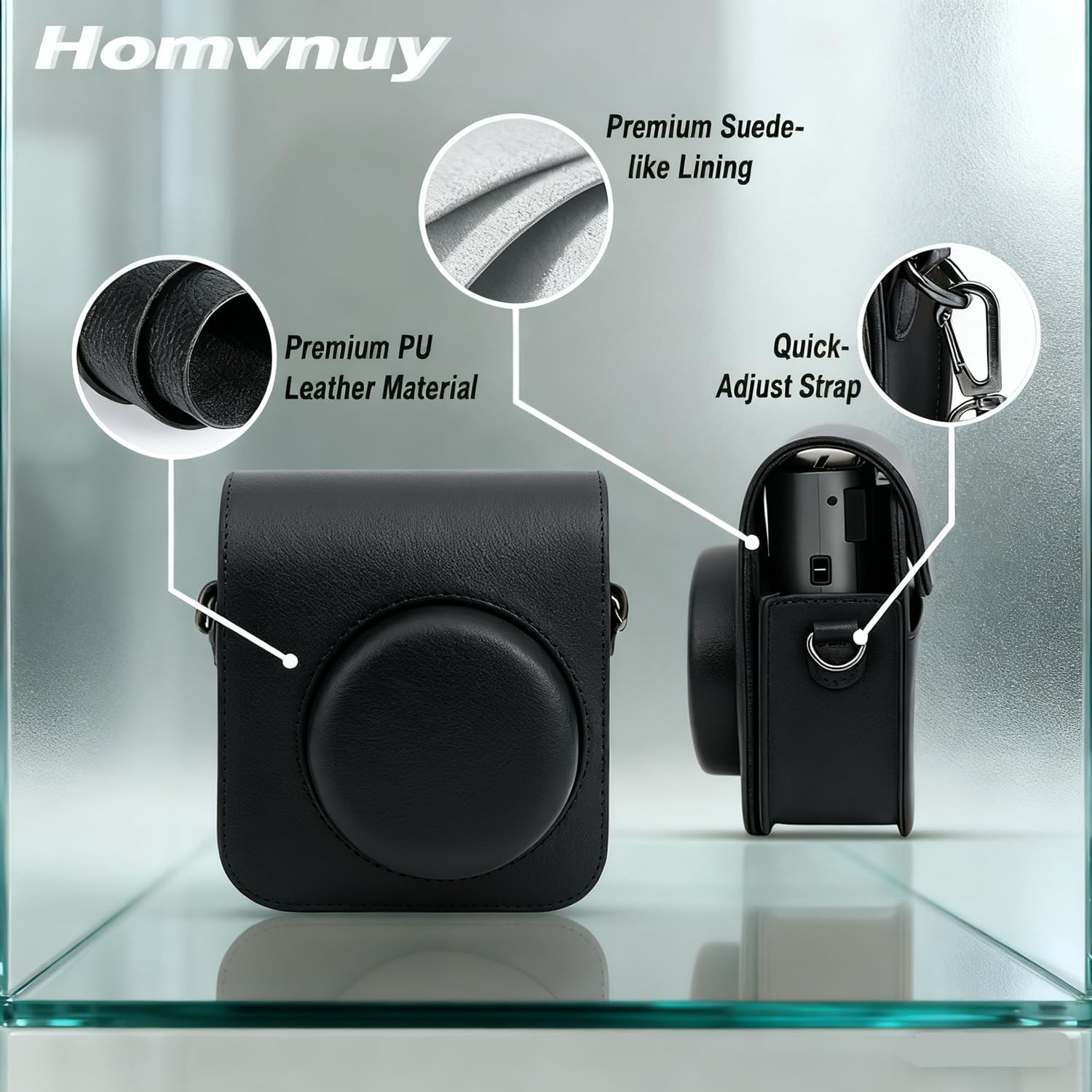 Protective Cover Case for Fujifilm Instax Mini 41 Instant Camera - Premium Synthetic Leather Skin with Detachable Adjustable Strap (Black)