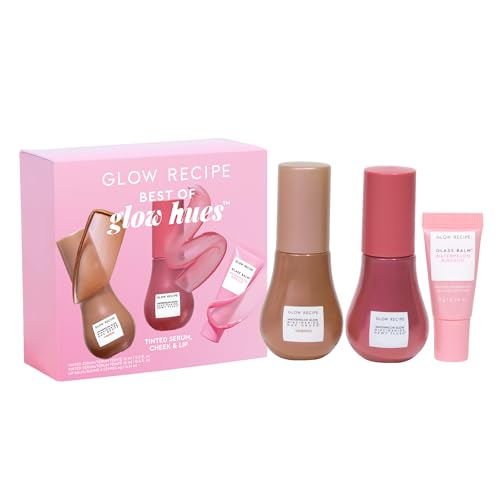 Glow Recipe Best of Glow Hues Kit - Travel Size Hue Drops Sun Glow, Full Size Dewy Flush Blush & Travel Size Glass Balm Lip Treatment (3 Count)