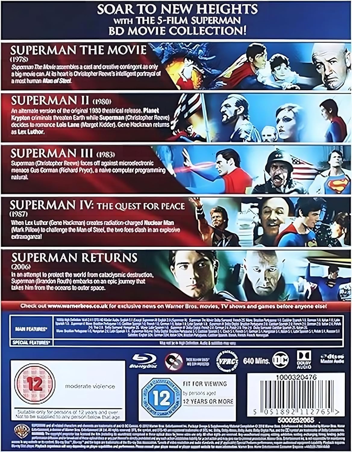 Superman 5-Film Collection Blu-ray Box Set, Complete Christopher Reeve Legacy Series 1978-1987, Region Free