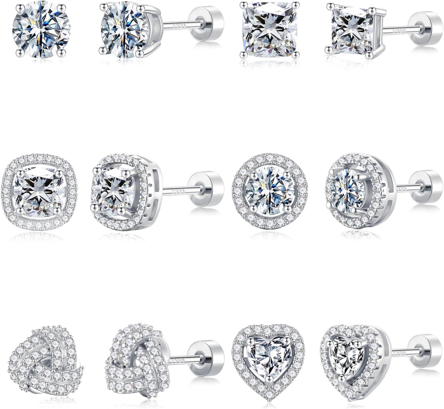 M MOOHAM Hypoallergenic 925 Sterling Silver Post Stud Earrings Set for Women - 14k Gold Plated Silver Flat Back Studs Cubic Zirconia Earrings for Women Dainty Nickel Free Earring for Sensitive Ears