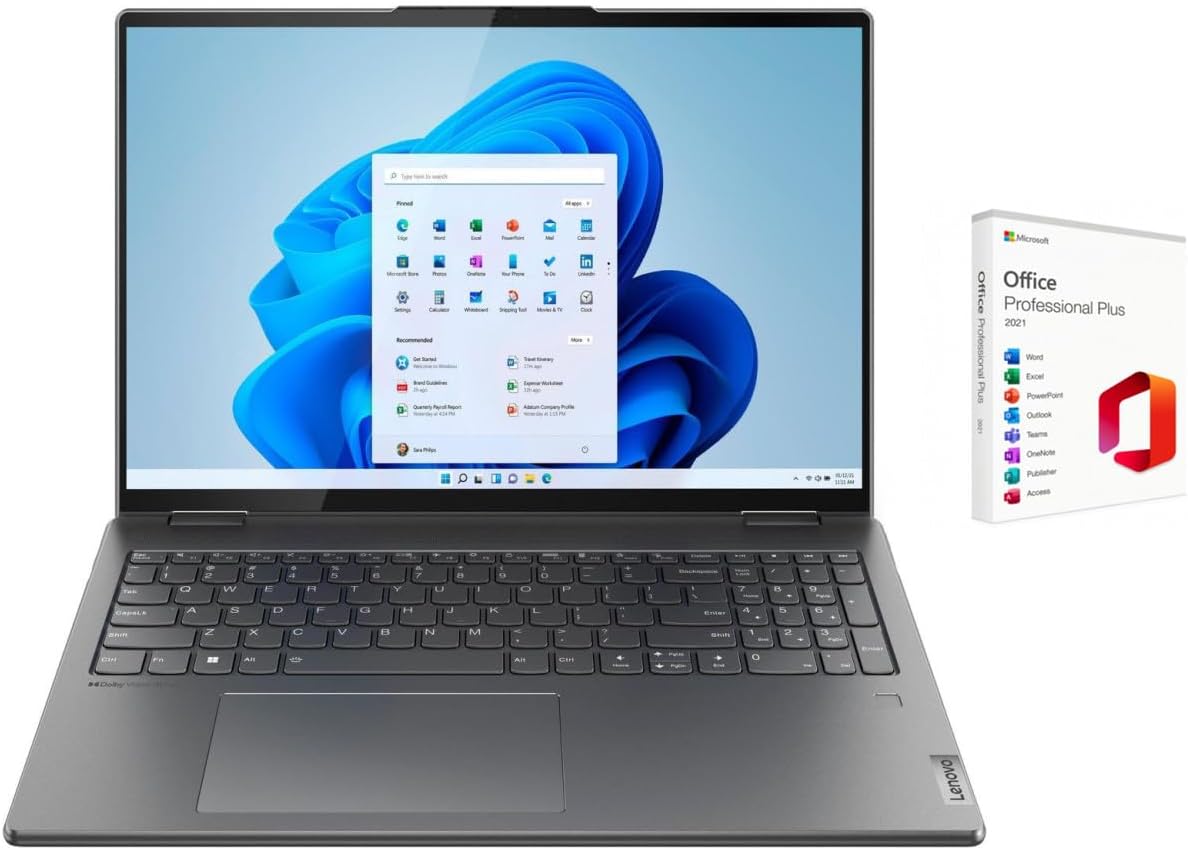 Lenovo Yoga 7i 2-in-1 16" 2.5K 2560 x 1600 Touch Premium Laptop | Intel Core i5-1240P | Intel Iris Xe Graphics | 8GB RAM | 256GB SSD | Backlit | Fingerprint |Windows 11 Pro |Bundle with Office 2021