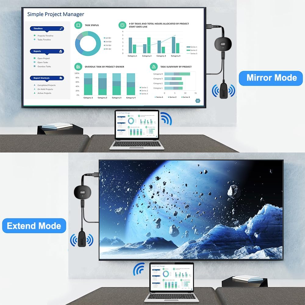 【MIRROR & EXTEND MODE】Switch between two display modes: Mirror Mode (4K/1080P/720P) for real-time shared content casting and Extend Mode for dual-screen multitasking. You can enjoy casting HD videos to your TV while using your phone for other apps, texts, or browsing in flexible extended mode.