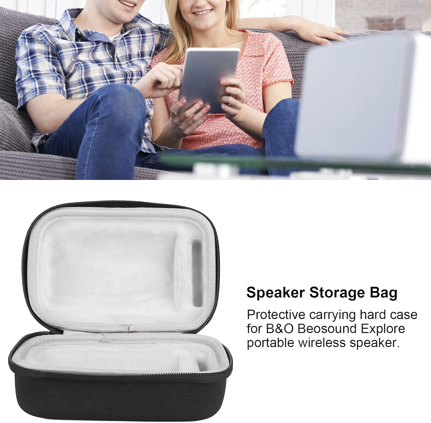VBESTLIFE Speaker Storage Bag Protective Carrying Case Pouch for B O Beosound Explore with Silicone Handle Small Grid for Accessories (Black)