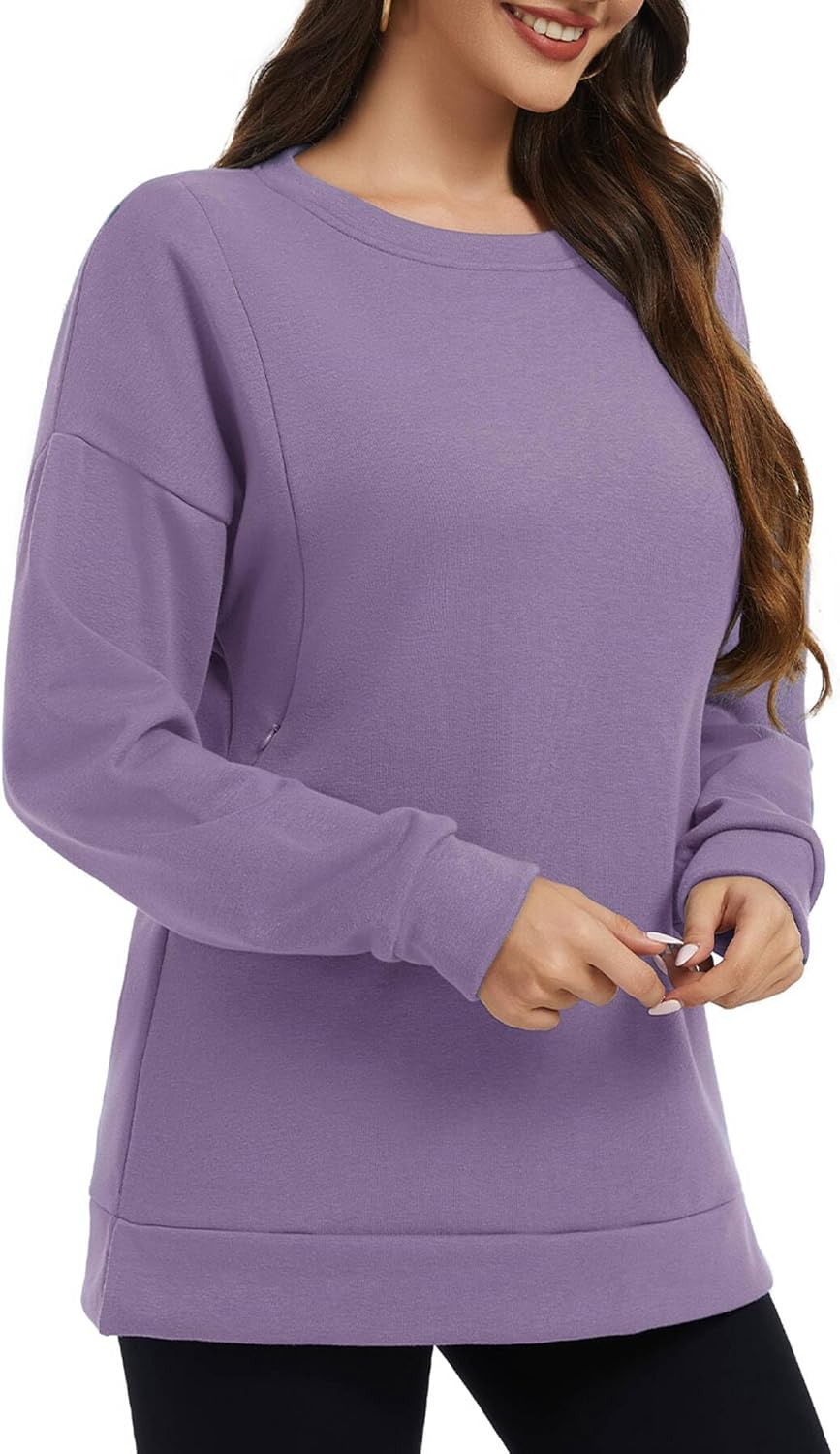Smallshow Women's Nursing Sweatshirt Tops Fleece Long Sleeve Breastfeeding Clothes