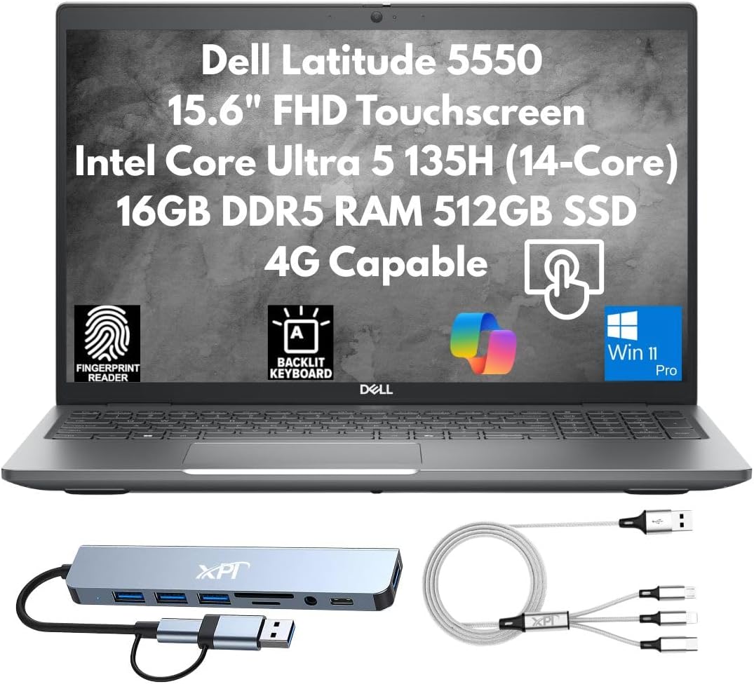Dell Latitude 5550 Business Laptop 2025, 15.6" FHD Touchscreen, Intel 14-Core Ultra 5 135H (Beat i7-1355U), 16GB DDR5 RAM, 512GB SSD, FP Reader, IR Cam, Ethernet, Thunderbolt 4, 4G Capable, Win 11 Pro
